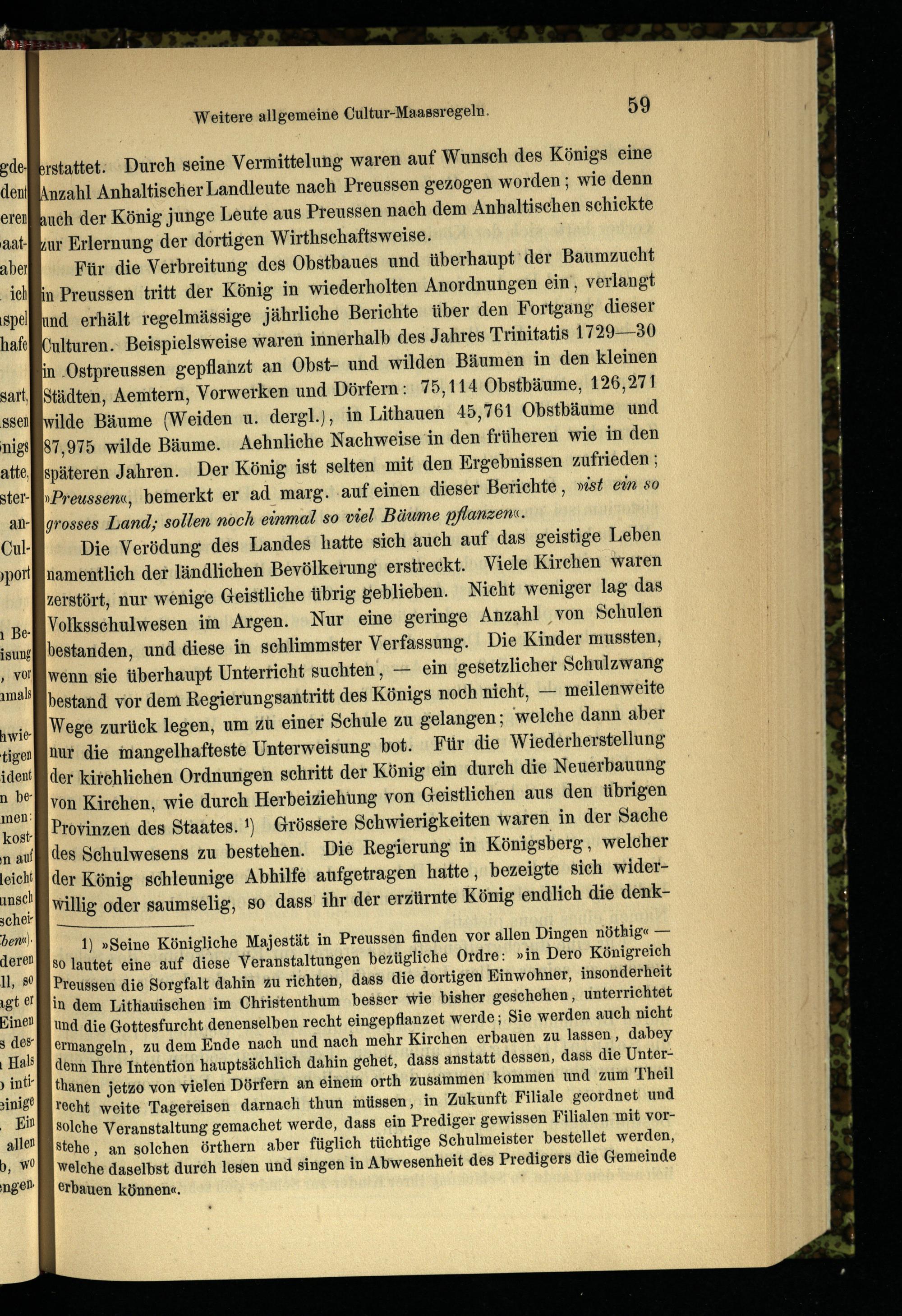 Friedrich Wilhelm I. in seiner Thätigkeit für die Landescultur Preußens