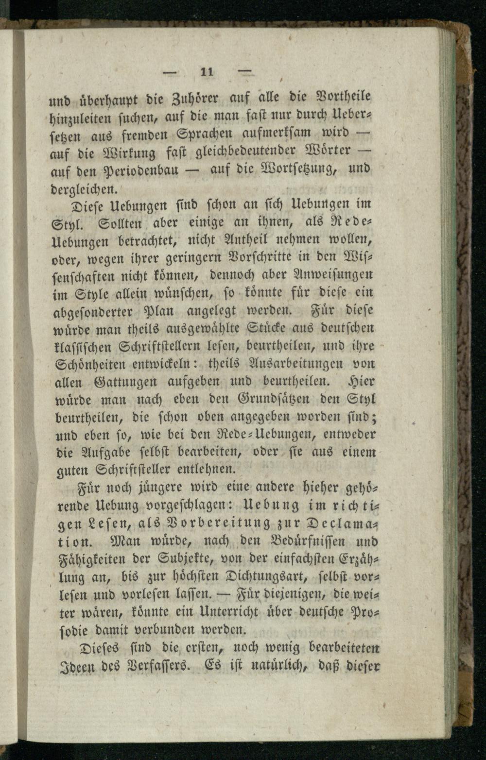 Erste Beilage. Plan anzustellender Rede-Uebungen. Zürich 1787.