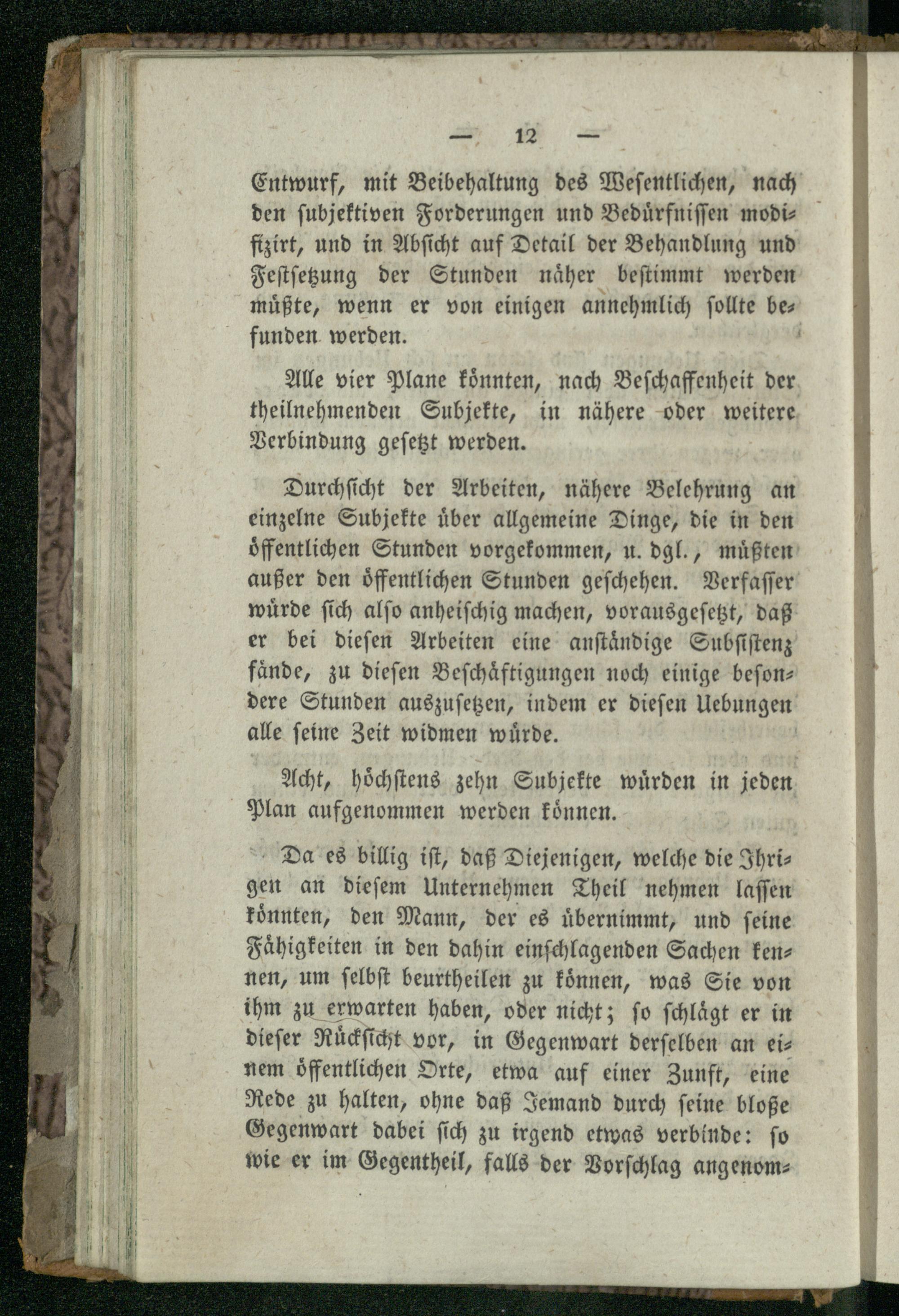 Erste Beilage. Plan anzustellender Rede-Uebungen. Zürich 1787.