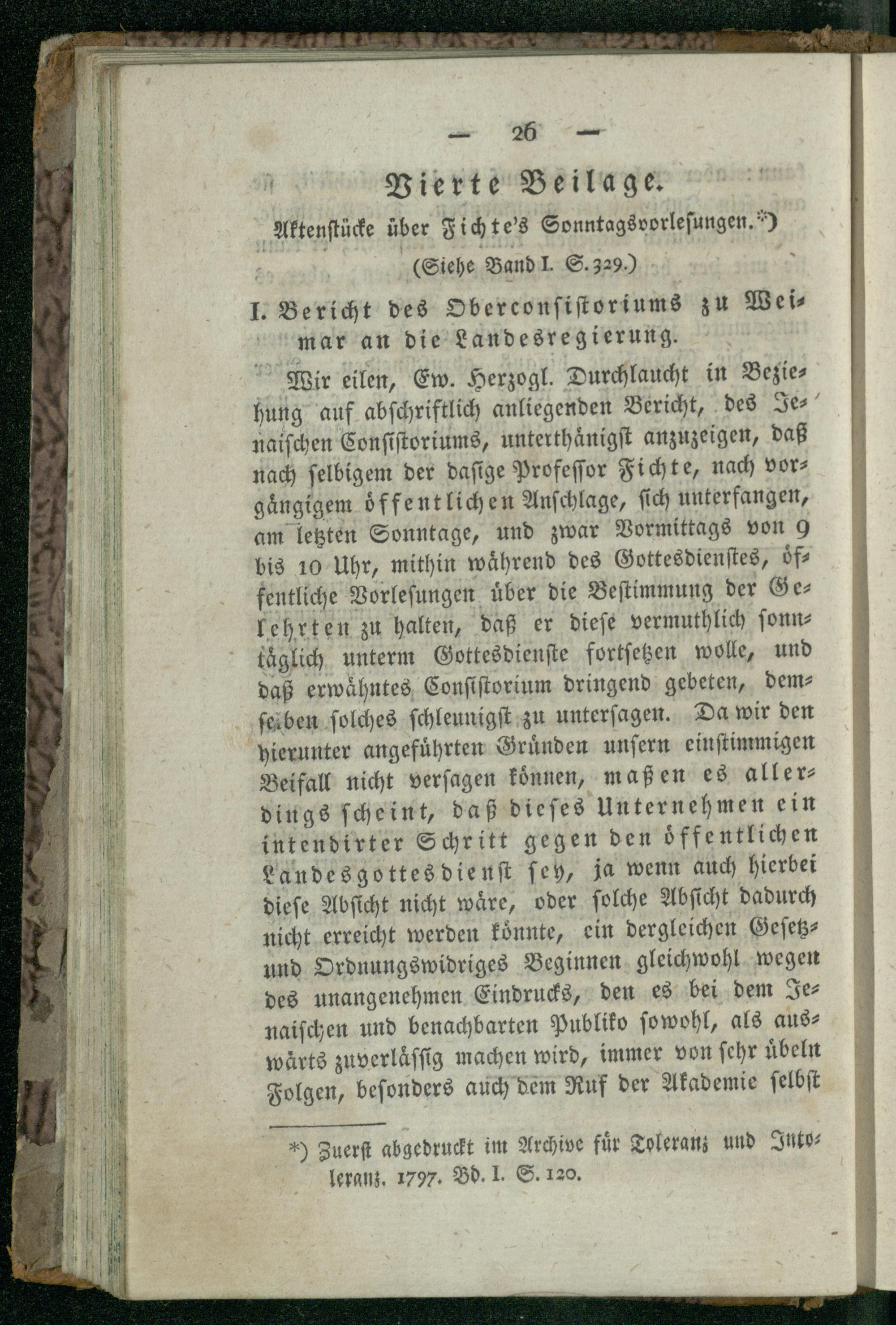 Vierte Beilage. Aktenstücke über Fichte's Sonntagsvorlesungen.