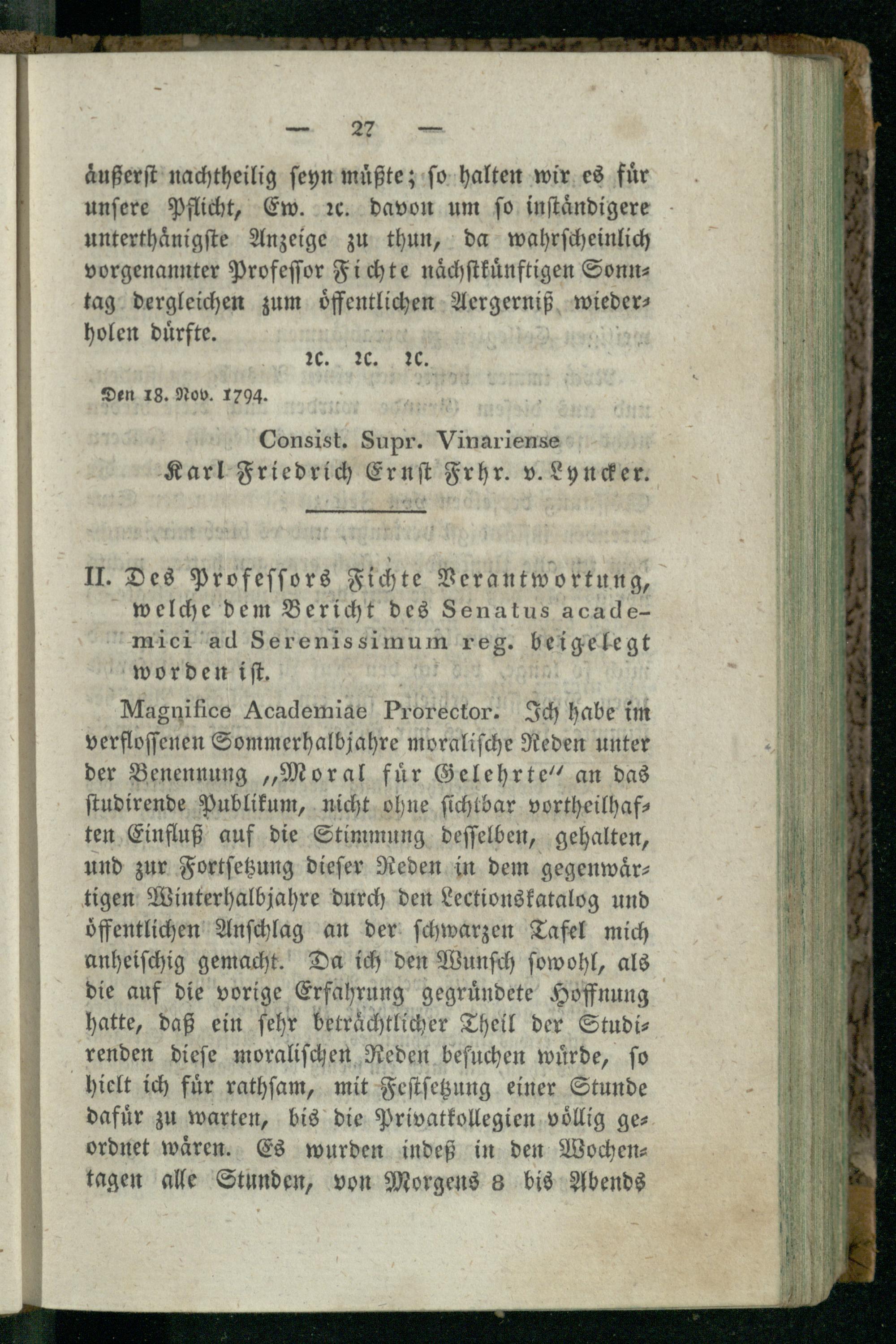 Vierte Beilage. Aktenstücke über Fichte's Sonntagsvorlesungen.