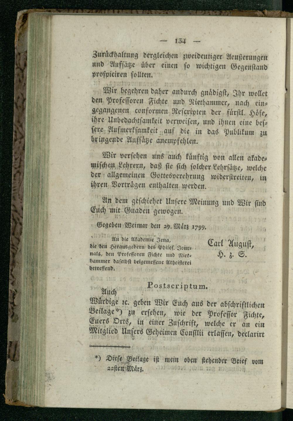 Sechste Beilage. Aktenstücke über die Anschuldigung des Atheismus.