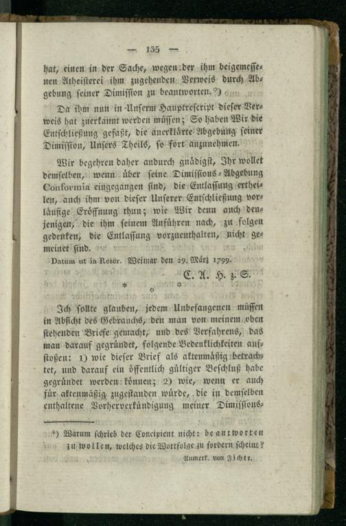 Sechste Beilage. Aktenstücke über die Anschuldigung des Atheismus.