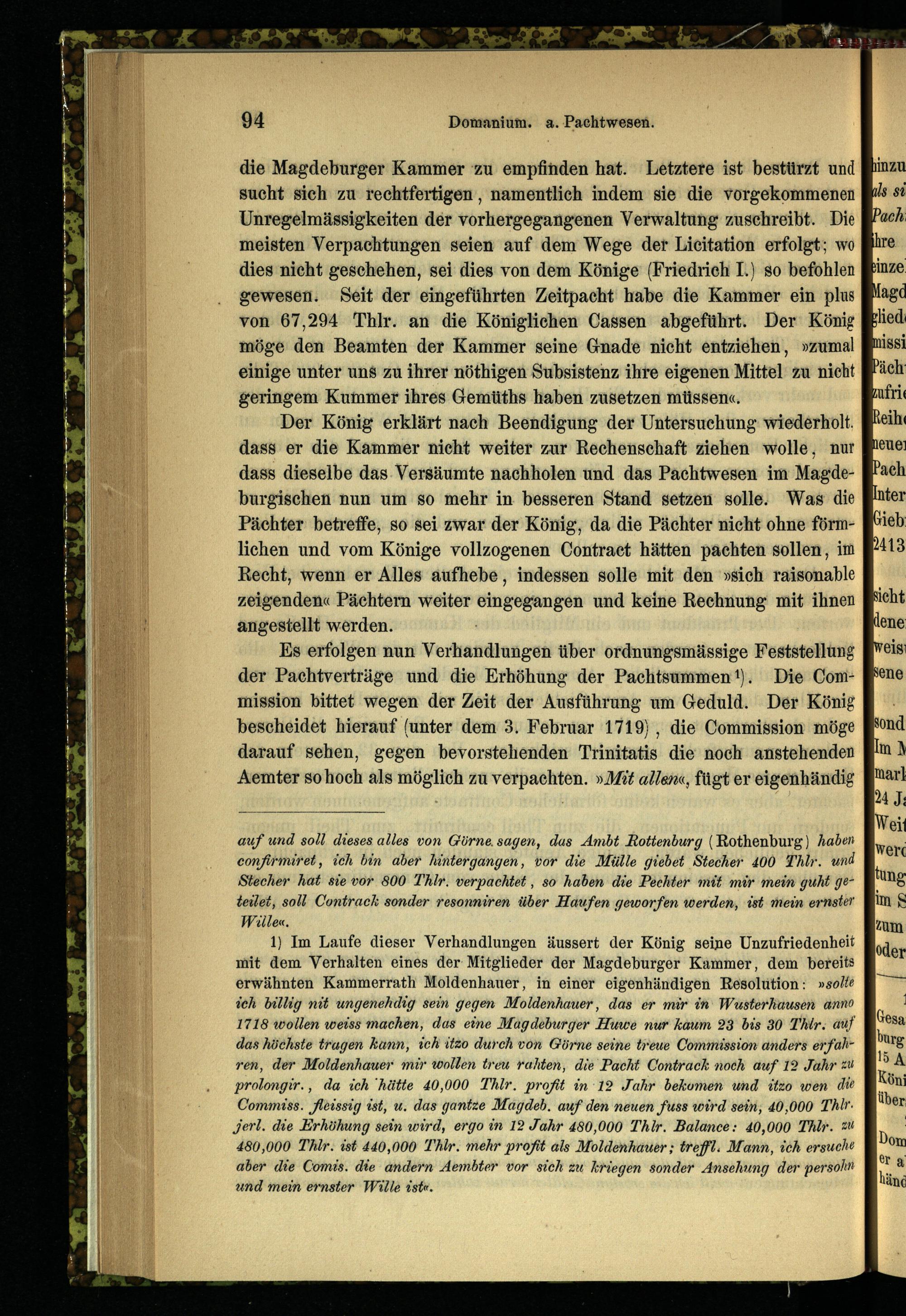 Friedrich Wilhelm I. in seiner Thätigkeit für die Landescultur Preußens