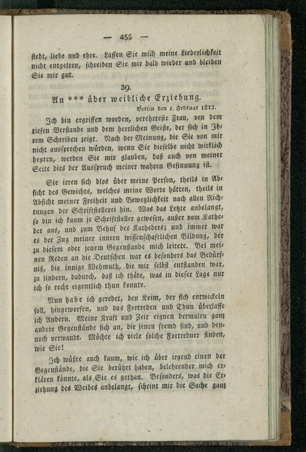 39. An *** über weibliche Erziehung.