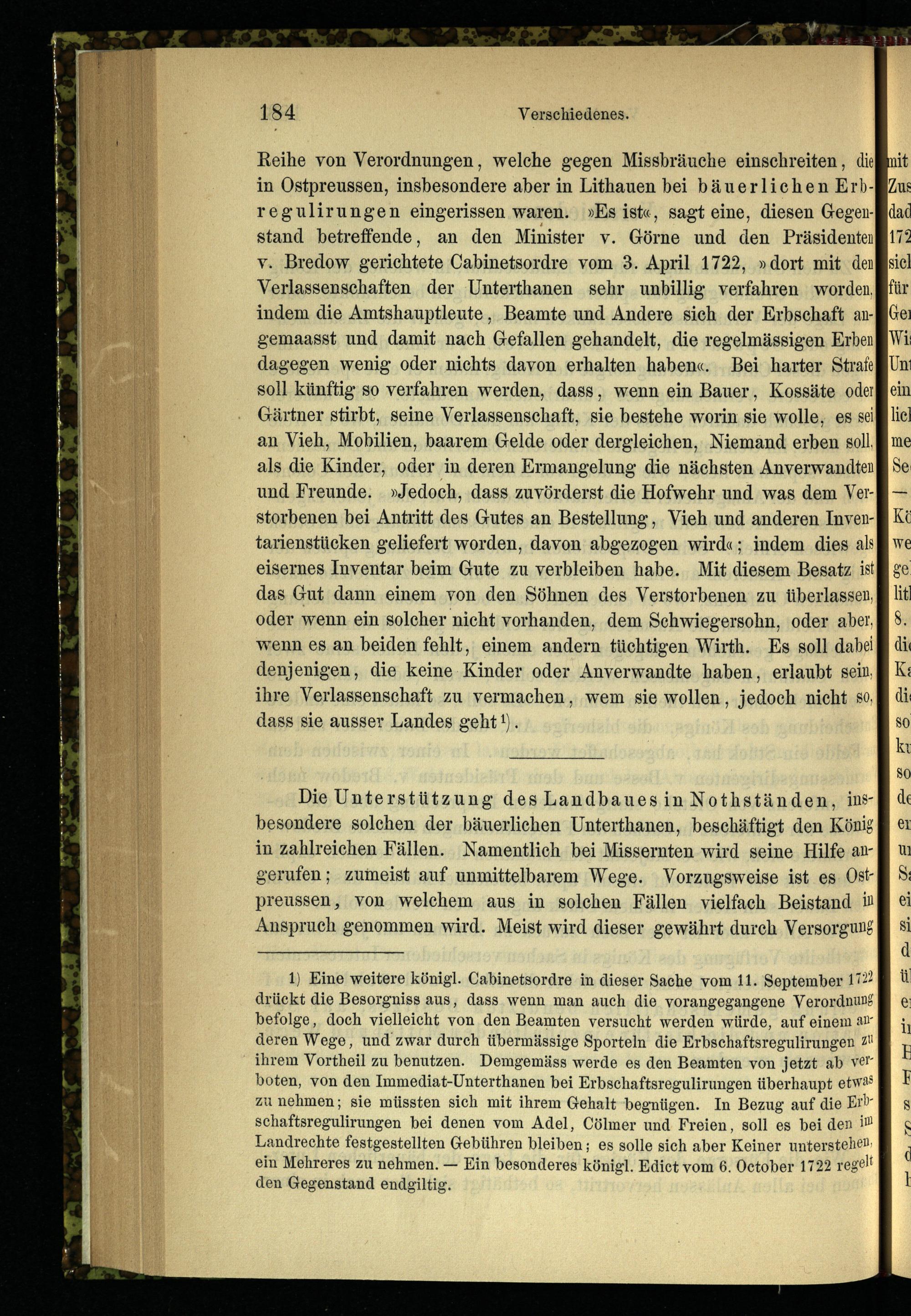 Friedrich Wilhelm I. in seiner Thätigkeit für die Landescultur Preußens