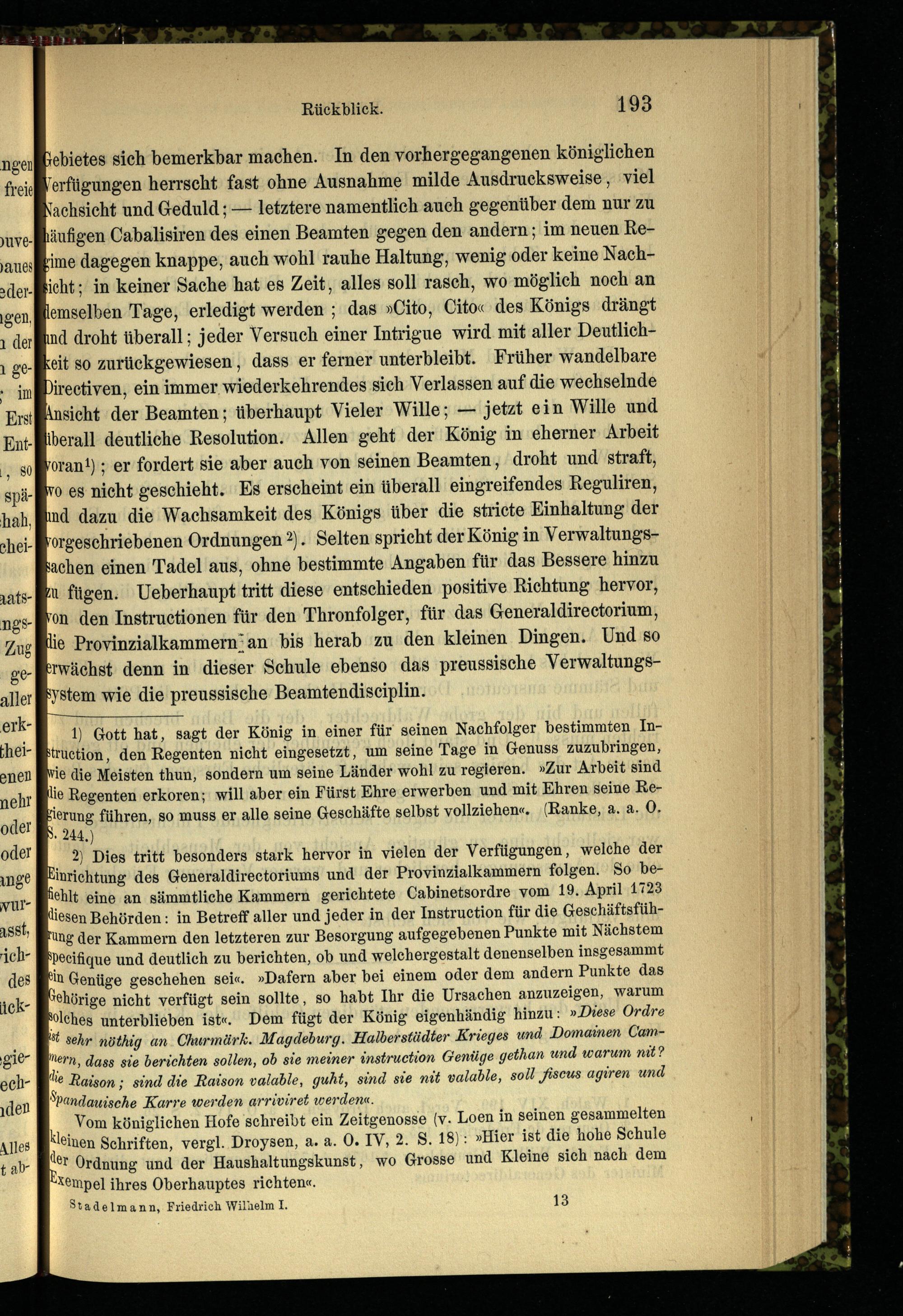 Friedrich Wilhelm I. in seiner Thätigkeit für die Landescultur Preußens / von Rudolph Stadelmann