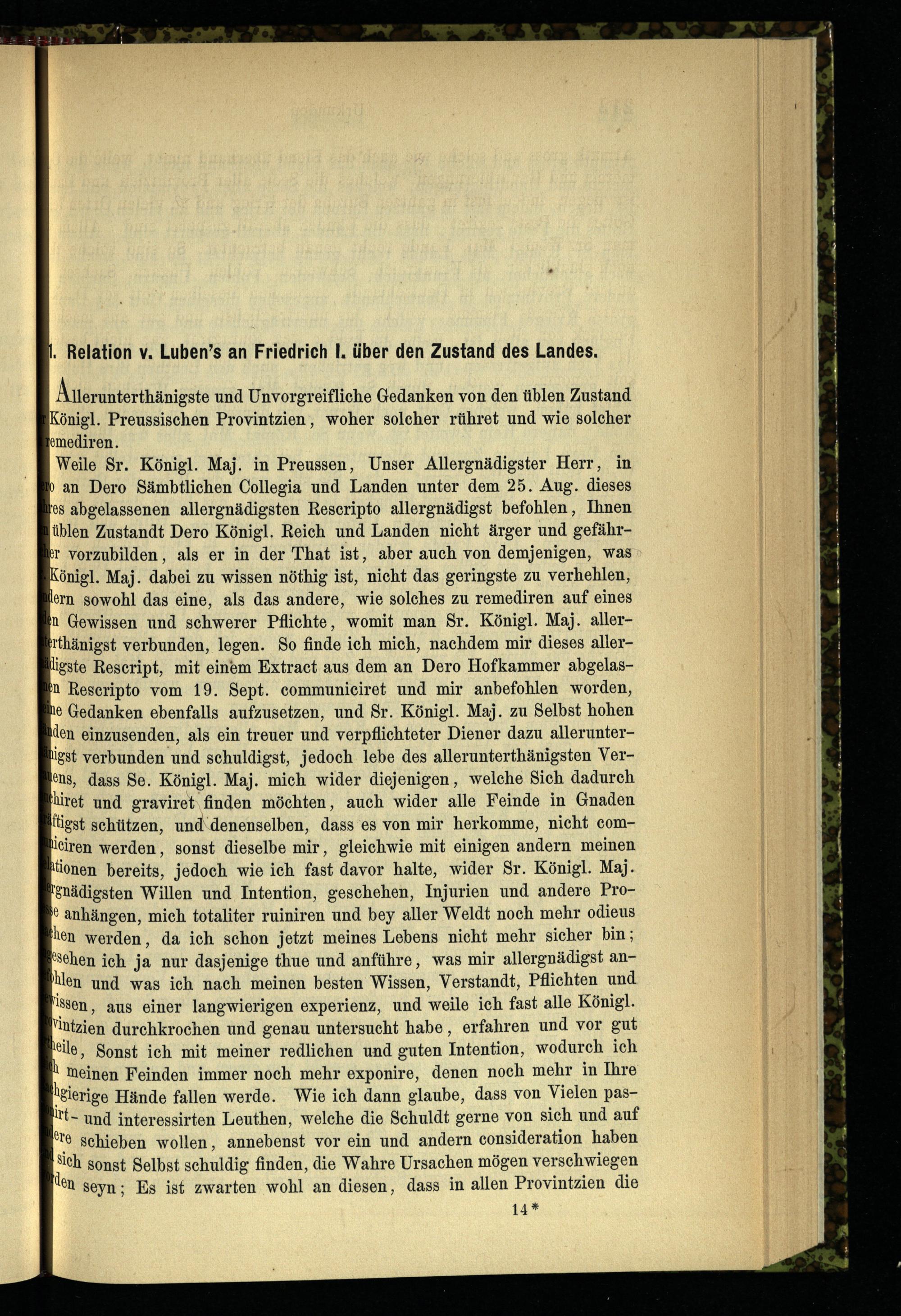 1. Relation v. Luben's an Friedrich I. über den Zustand des Landes.