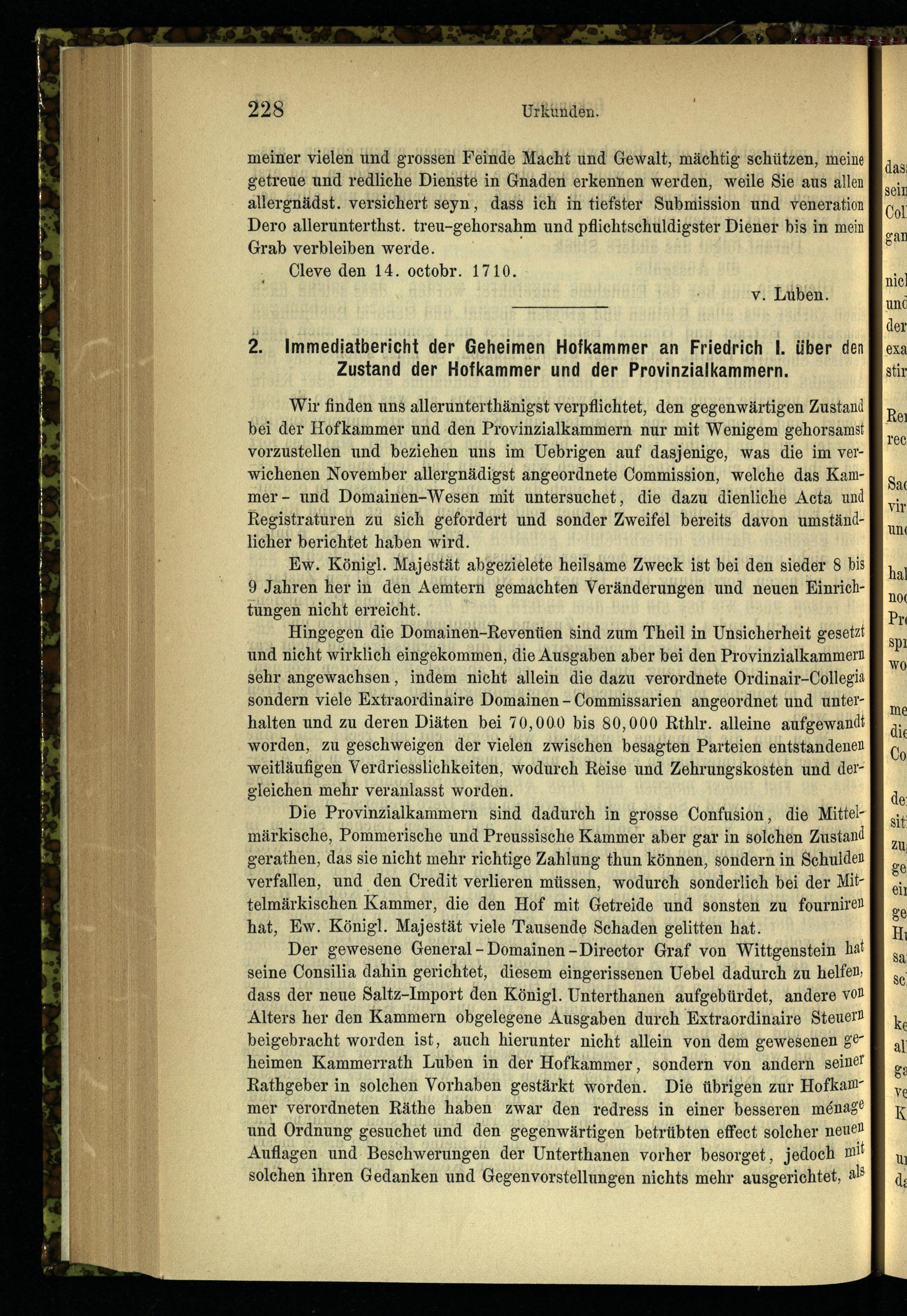 2. Immediatbericht der Geheimen Hofkammer an Friedrich I. über den Zustand der Hofkammer...