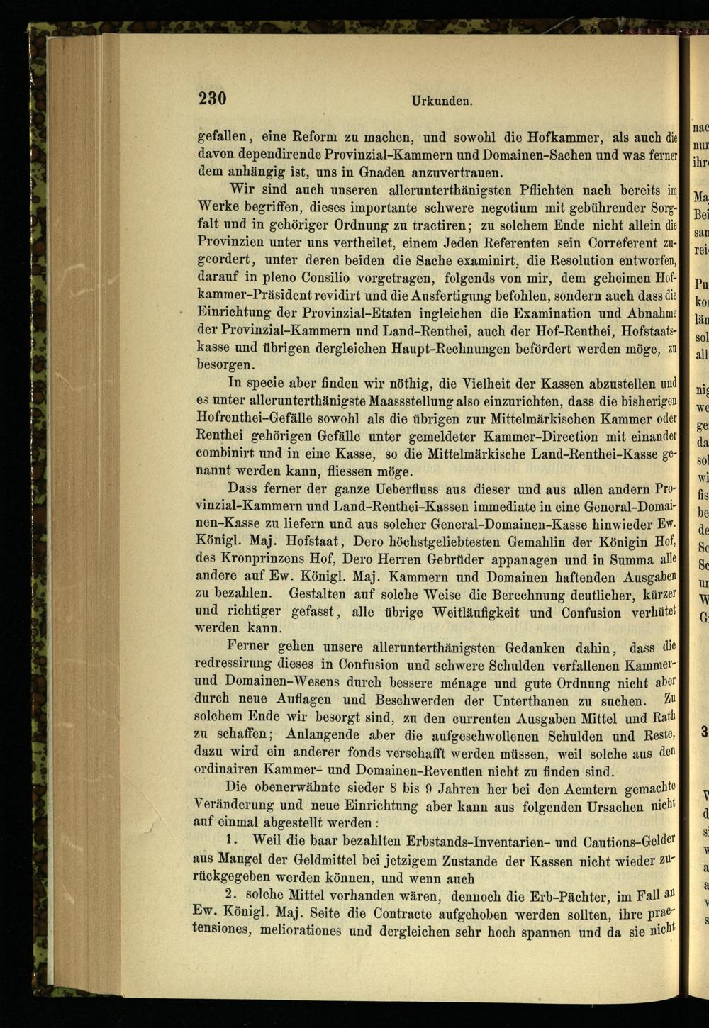 2. Immediatbericht der Geheimen Hofkammer an Friedrich I. über den Zustand der Hofkammer...