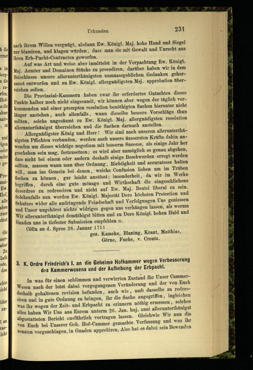 3. K. Ordre Friedrich's I. an die Geheime Hofkammer wegen Verbesserung des Kammerwesens...
