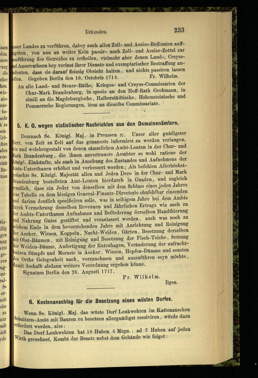 6. K. O. wegen statistischer Nachrichten aus den Domainenämtern.