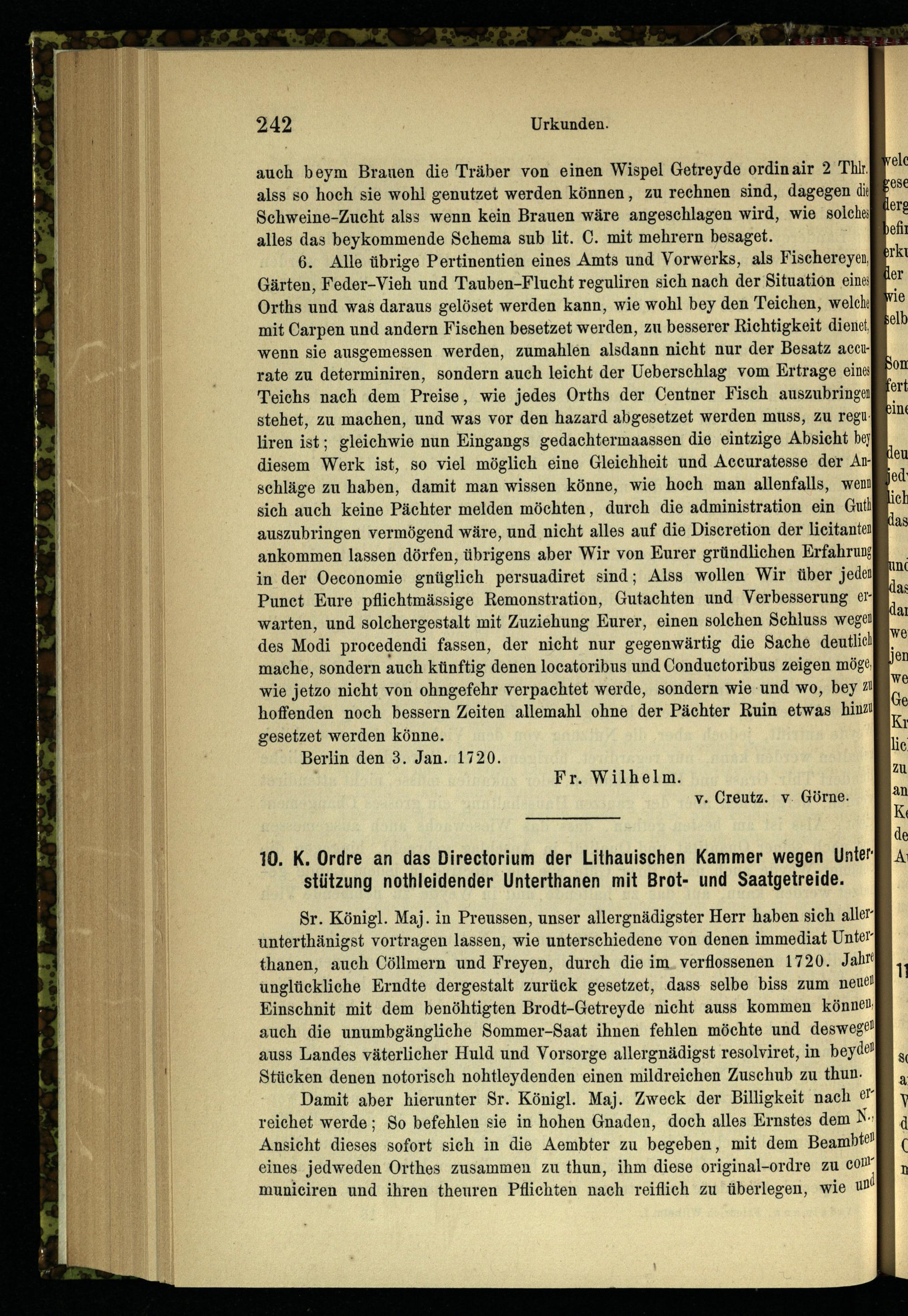 10. K. Ordre an das Directorium der Lithauischen Kammer wegen Unterstützung nothleidender...
