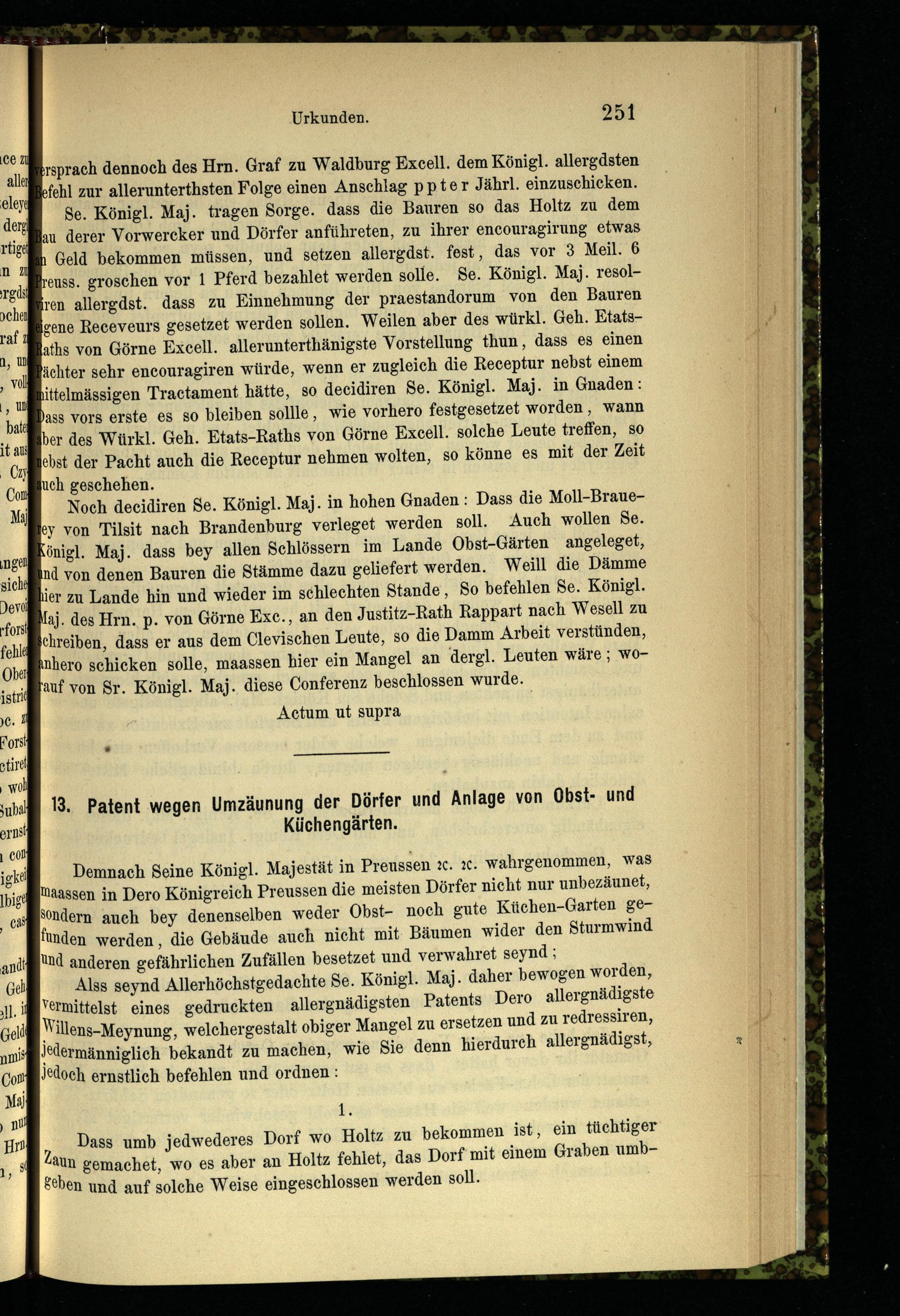 13. Patent wegen Umzäunung der Dörfer und Anlage von Obst- und Kirchengärten.