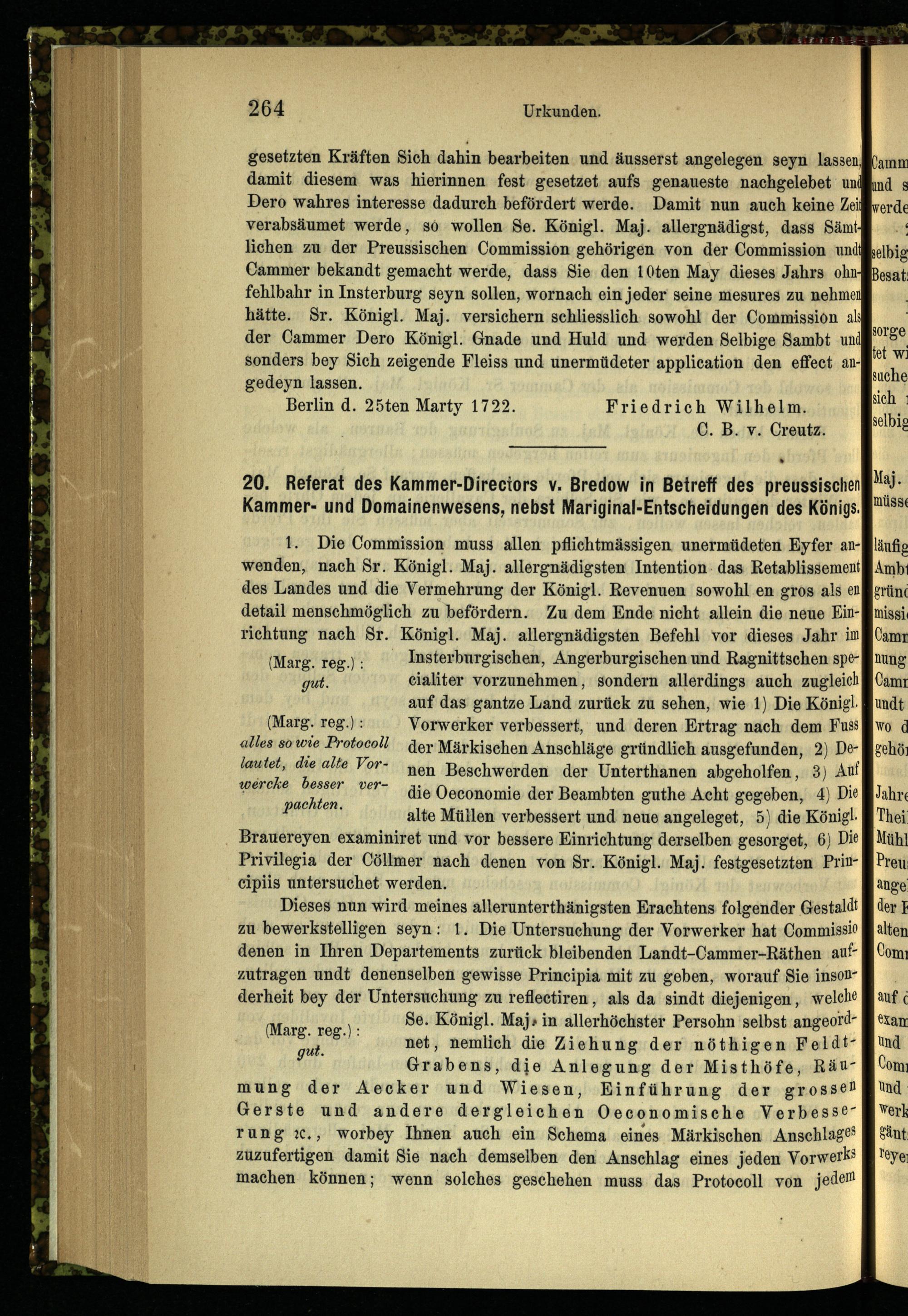 20. Referat des Kammer-Directors v. Bredow in Betreff des preussischen Kammer- und...