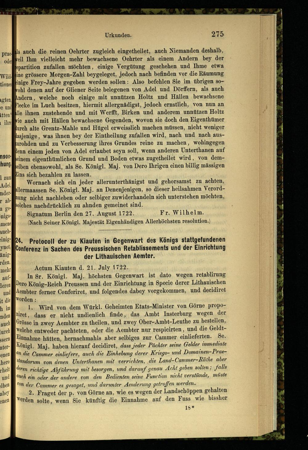 24. Protocoll der zu Kiauten in Gegenwart des Königs stattgefundenen Conferenz in...