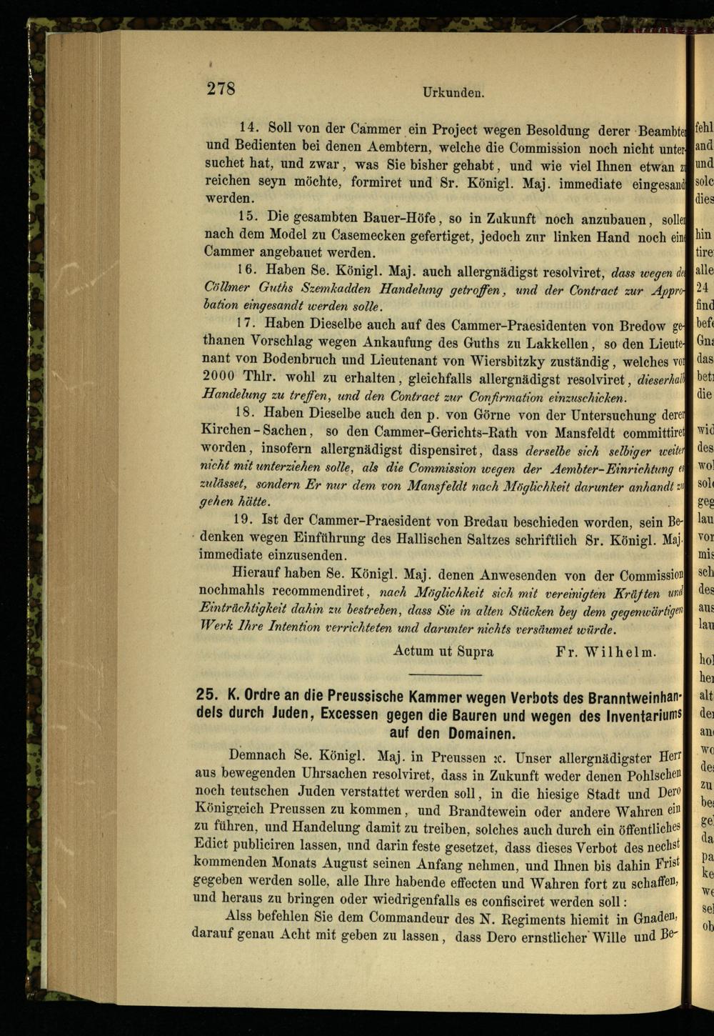 26. K. Ordre an die Preussische Kammer wegen Verbots des Branntweinhandels durch...