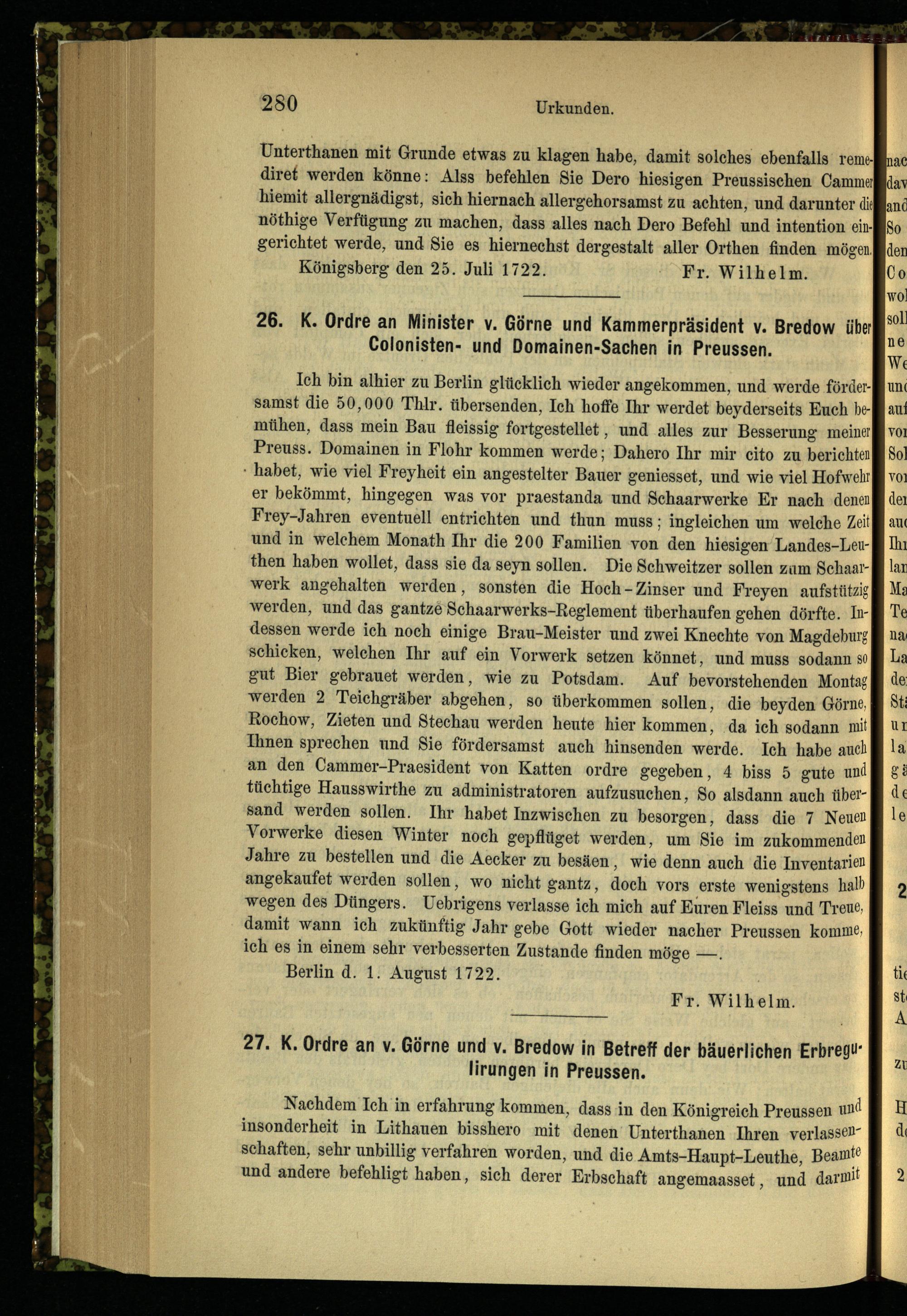 27. K. Ordre an v. Görne und v. Bredow in Betreff der bäuerlichen Erbregulirungen...