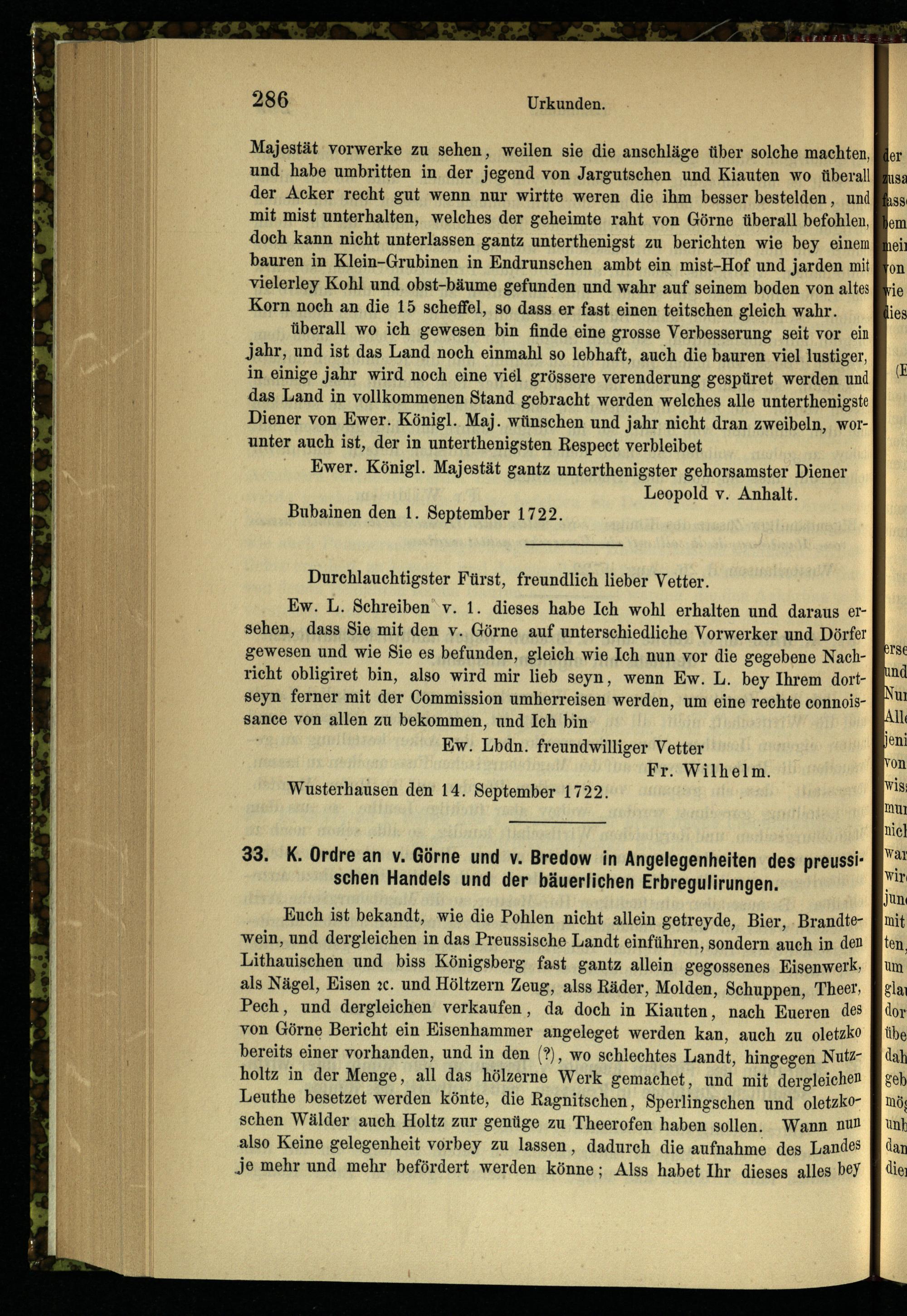 33. K. Ordre an v. Görne und v. Bredow in Angelegenheit des preussischen Handels...