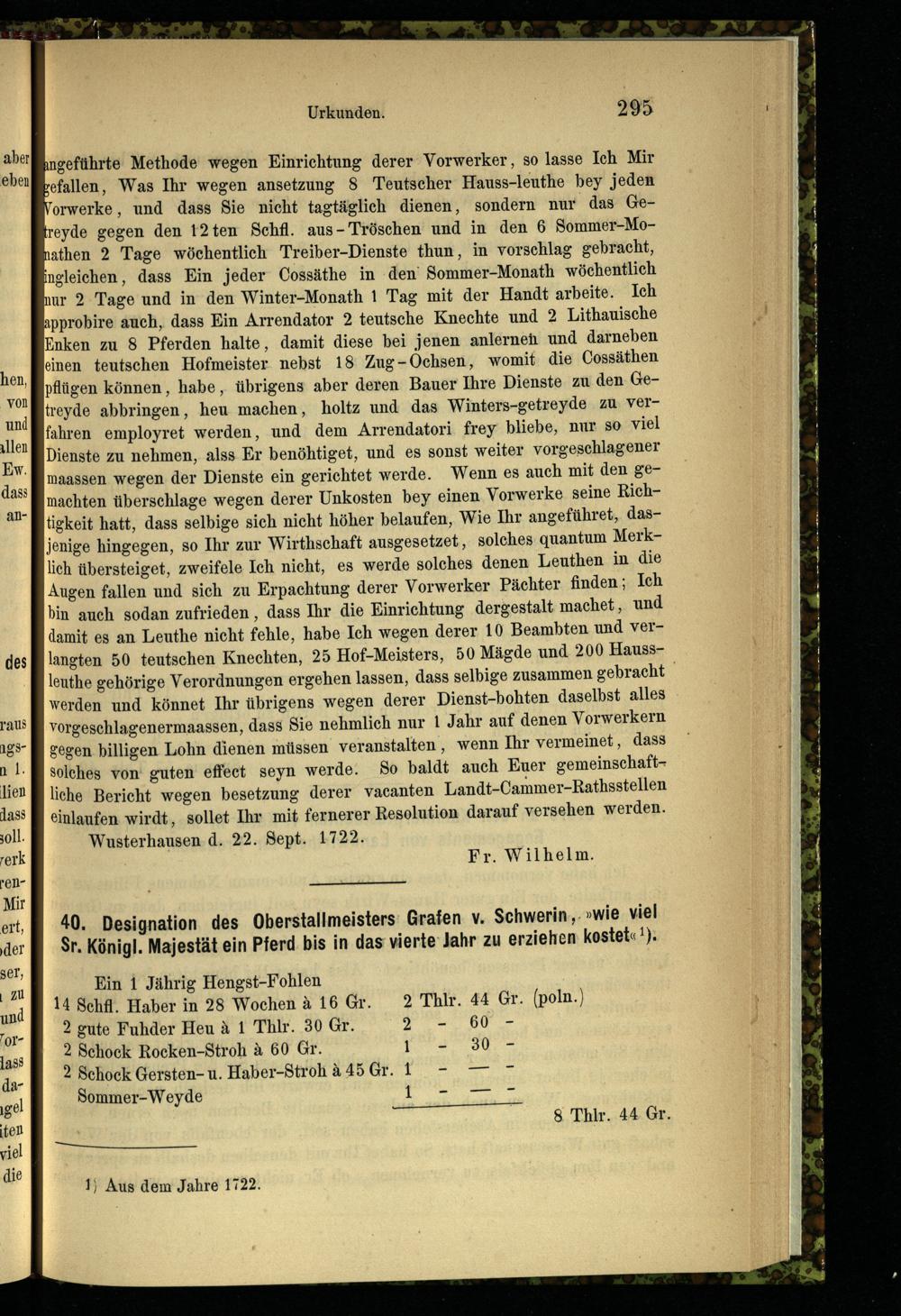 40. Designation des Oberstallmeisters Grafen v. Schwerin, "wie viel Sr. Königl Majestät...