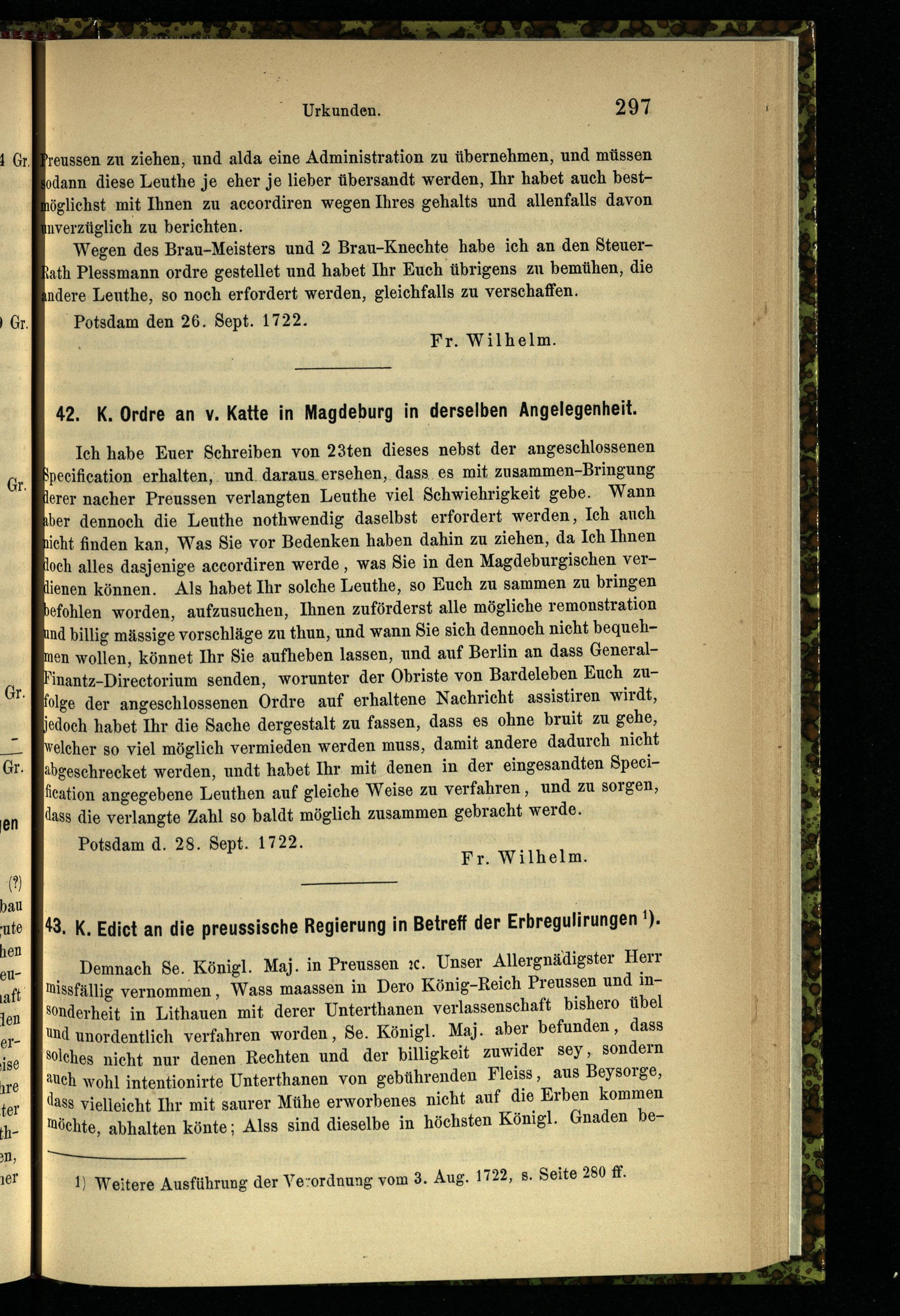 43. K. Edict an die preussische Regierung in Betreff der Erbregulirungen.