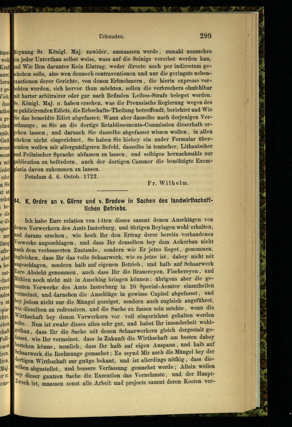 44. K. Ordre an v. Görne und v. Bredow in Sachen des landwirthschaftlichen Betri...
