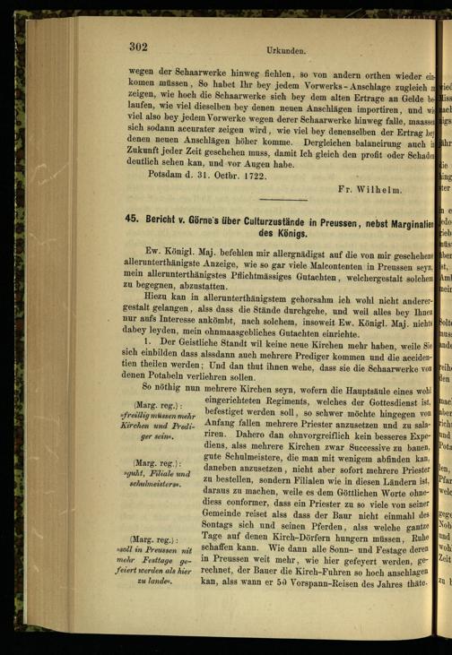 45. Bericht v. Görne's über Culturzustände in Preussen, nebst Marginalien des Kö...