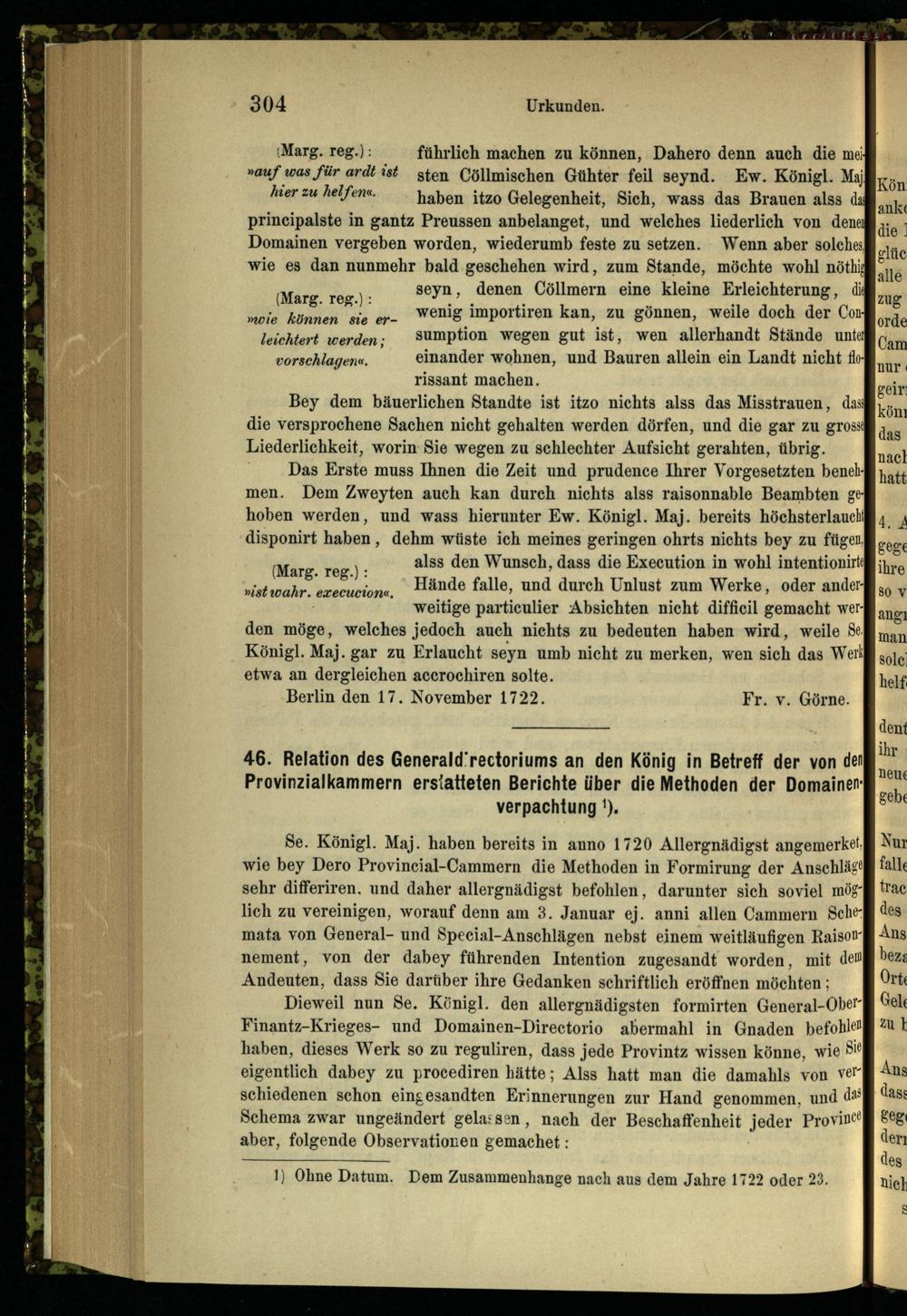 46. Relation des Generaldirectoriums an den König in Betreff der von den Provinzialkammern...