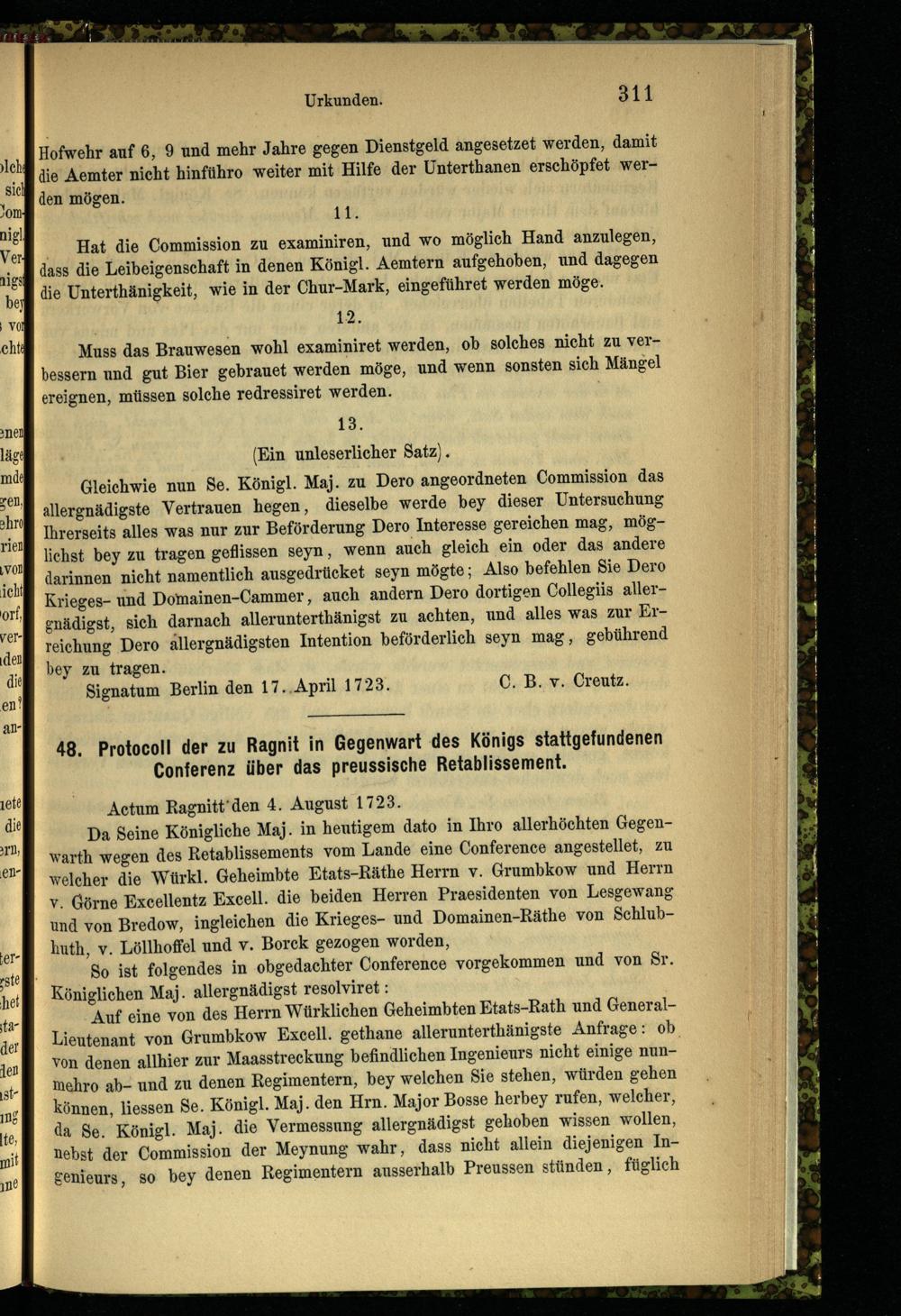 48. Protocoll der zu Ragnit in Gegenwart des Königs stattgefundenen Conferenz über...