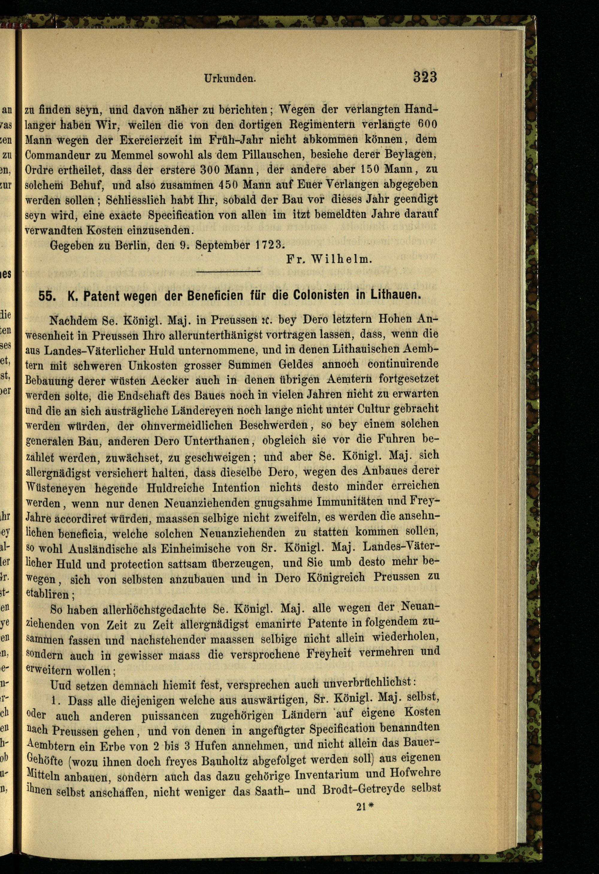 55. K. Patent wegen der Benefiction für die Colonisten in Lithauen.