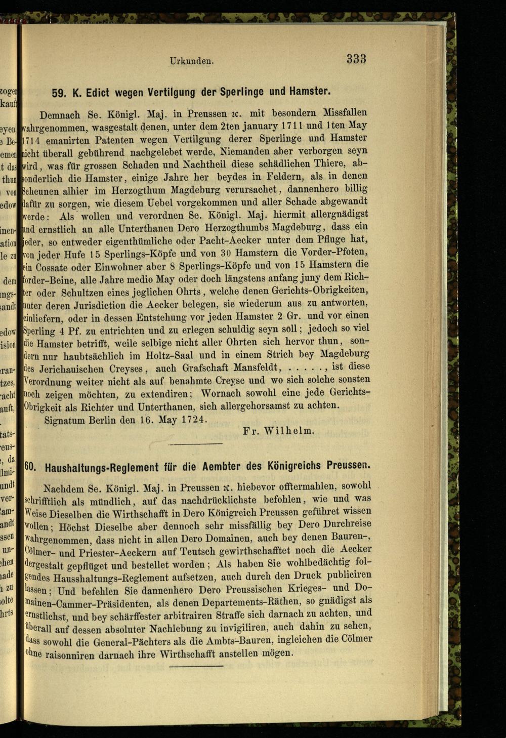 60. Haushaltungs-Reglement für die Aembter des Königreichs Preussen.