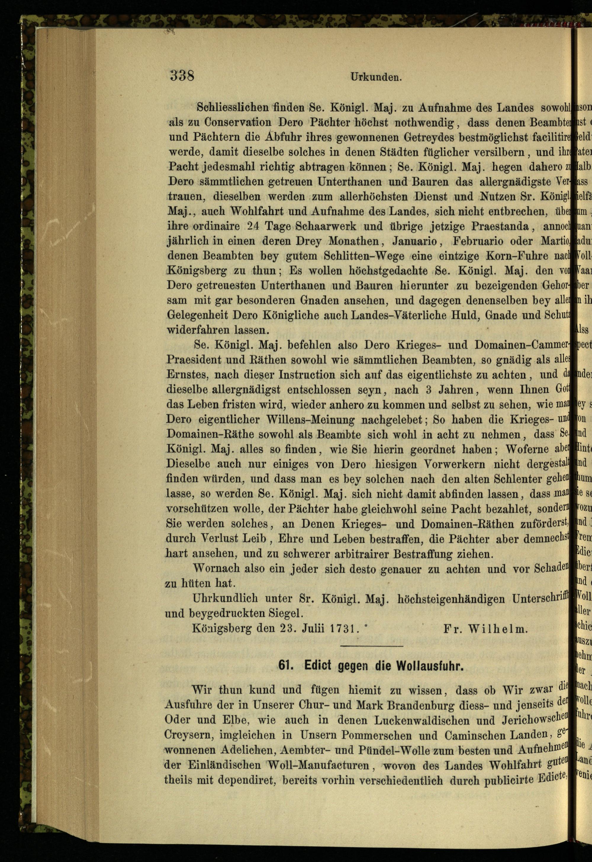 Friedrich Wilhelm I. in seiner Thätigkeit für die Landescultur Preußens