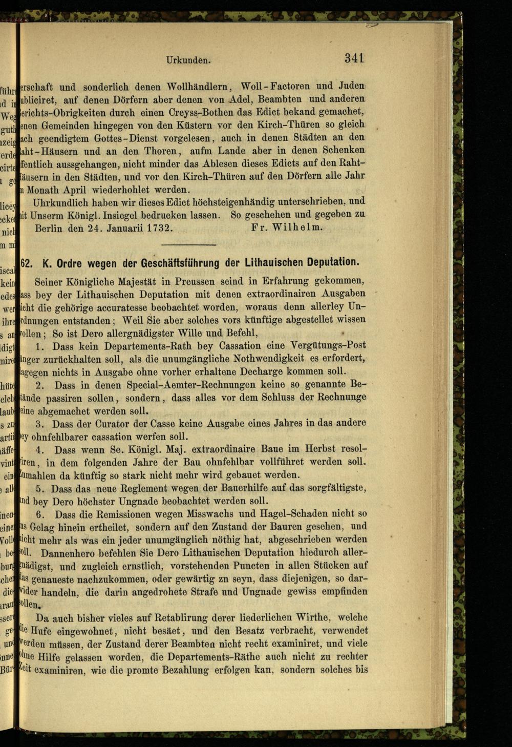 62. K. Ordre wegen der Geschäftsführung der Lithauischen Deputation.