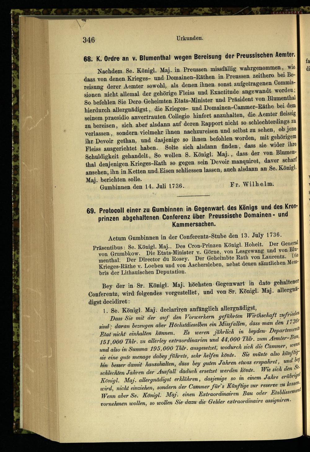 69. Protocoll einer zu Gumbinnen in Gegenwart des Königs und des Kronprinzen abgehaltenen...