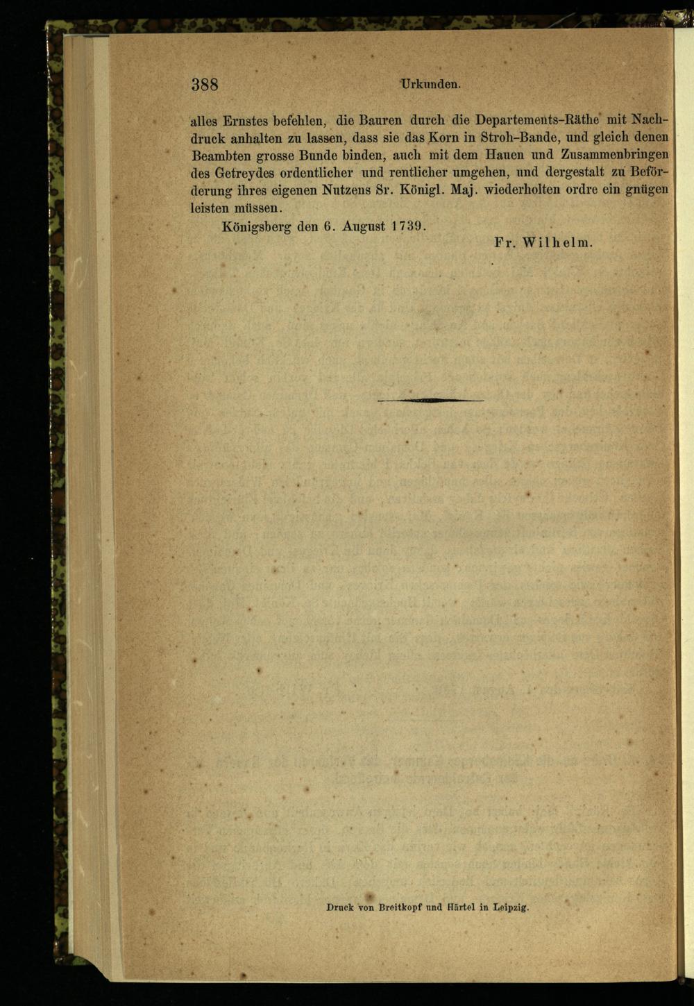 90. K. Ordre an die Königsberger Kammer, das Verfahren der Bauern bei der Getreideernte...