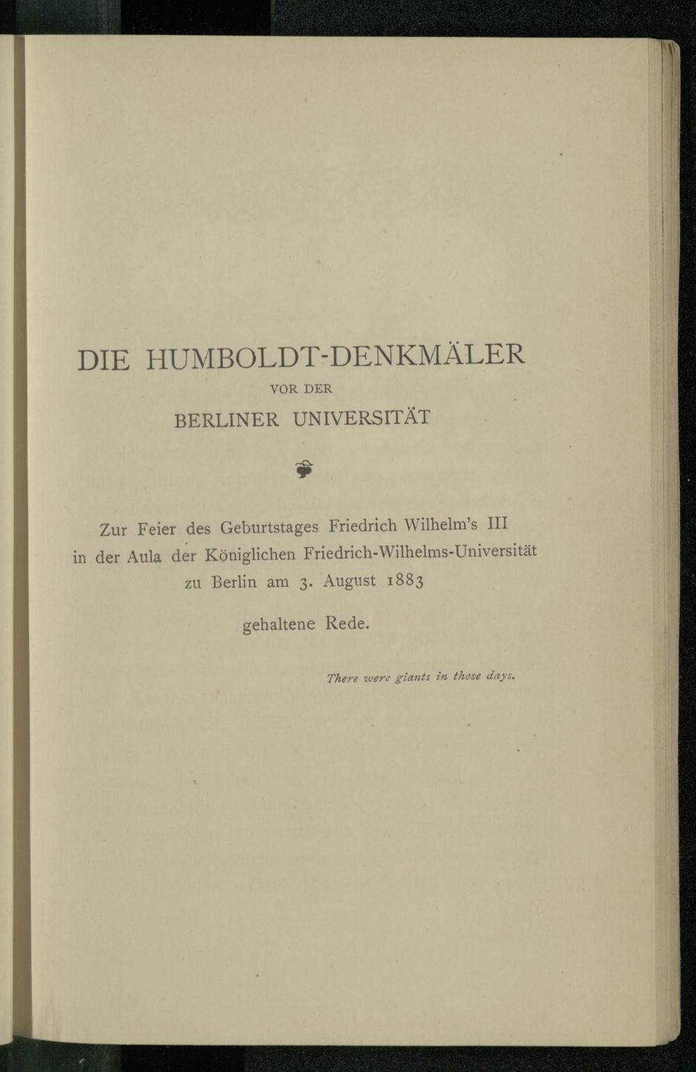 Die Humboldt-Denkmäler von der Berliner Universität.