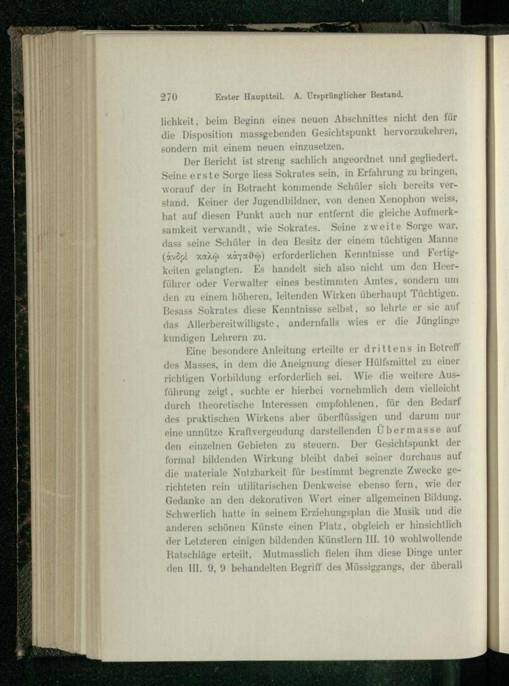 Erster Hauptteil. Disposition und Gedankengehalt der Memorabilien.
