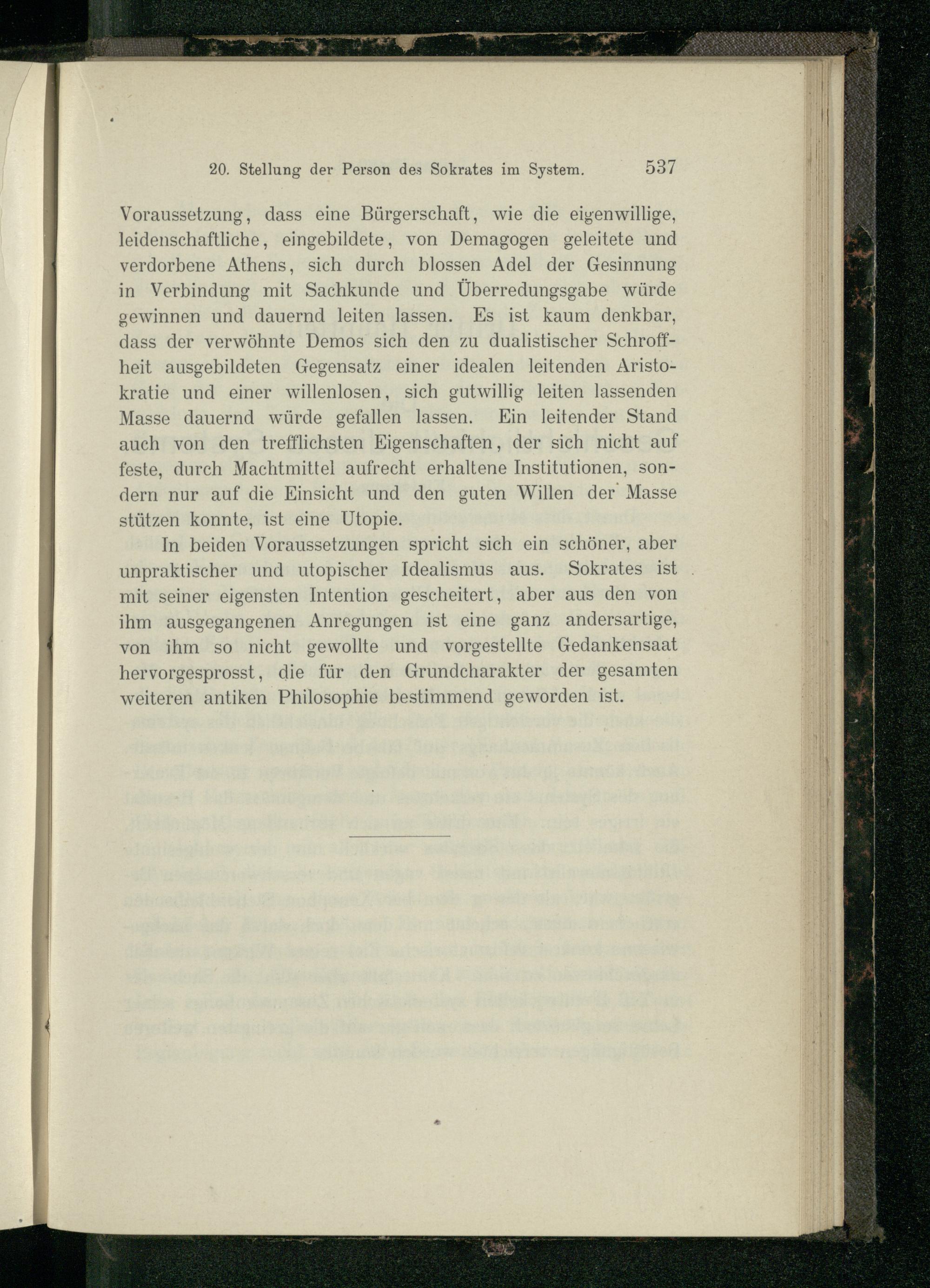20. Die Stellung der Persönlichkeit des Sokrates in seinem System.