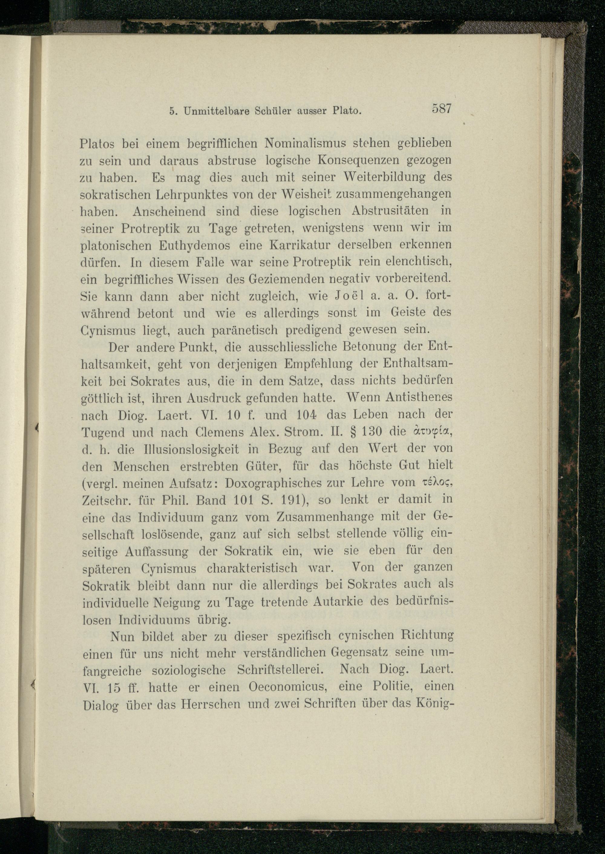 5. Etwaige Spuren der Sokratik bei den unmittelbaren Schülern ausser Plato.