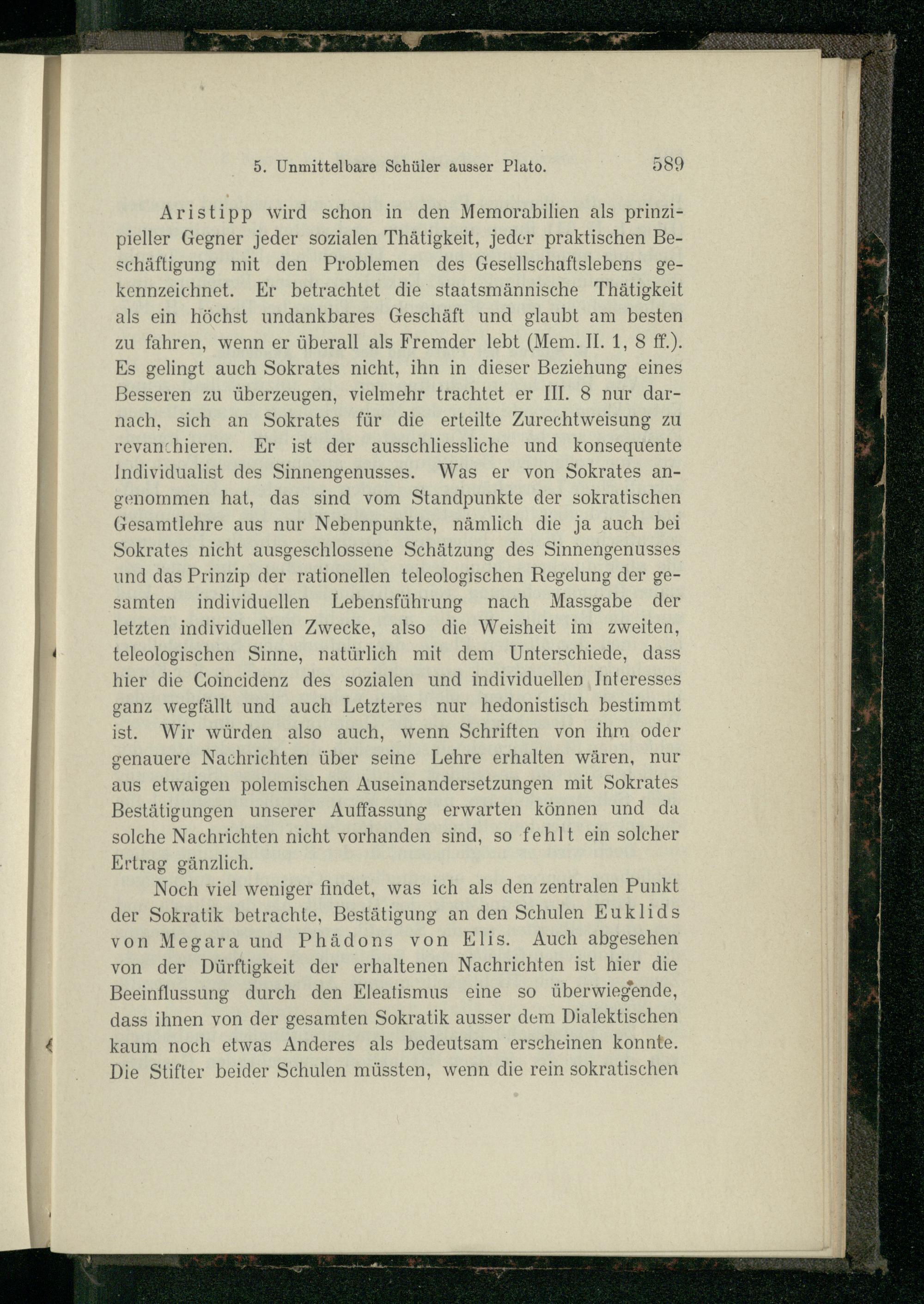 5. Etwaige Spuren der Sokratik bei den unmittelbaren Schülern ausser Plato.