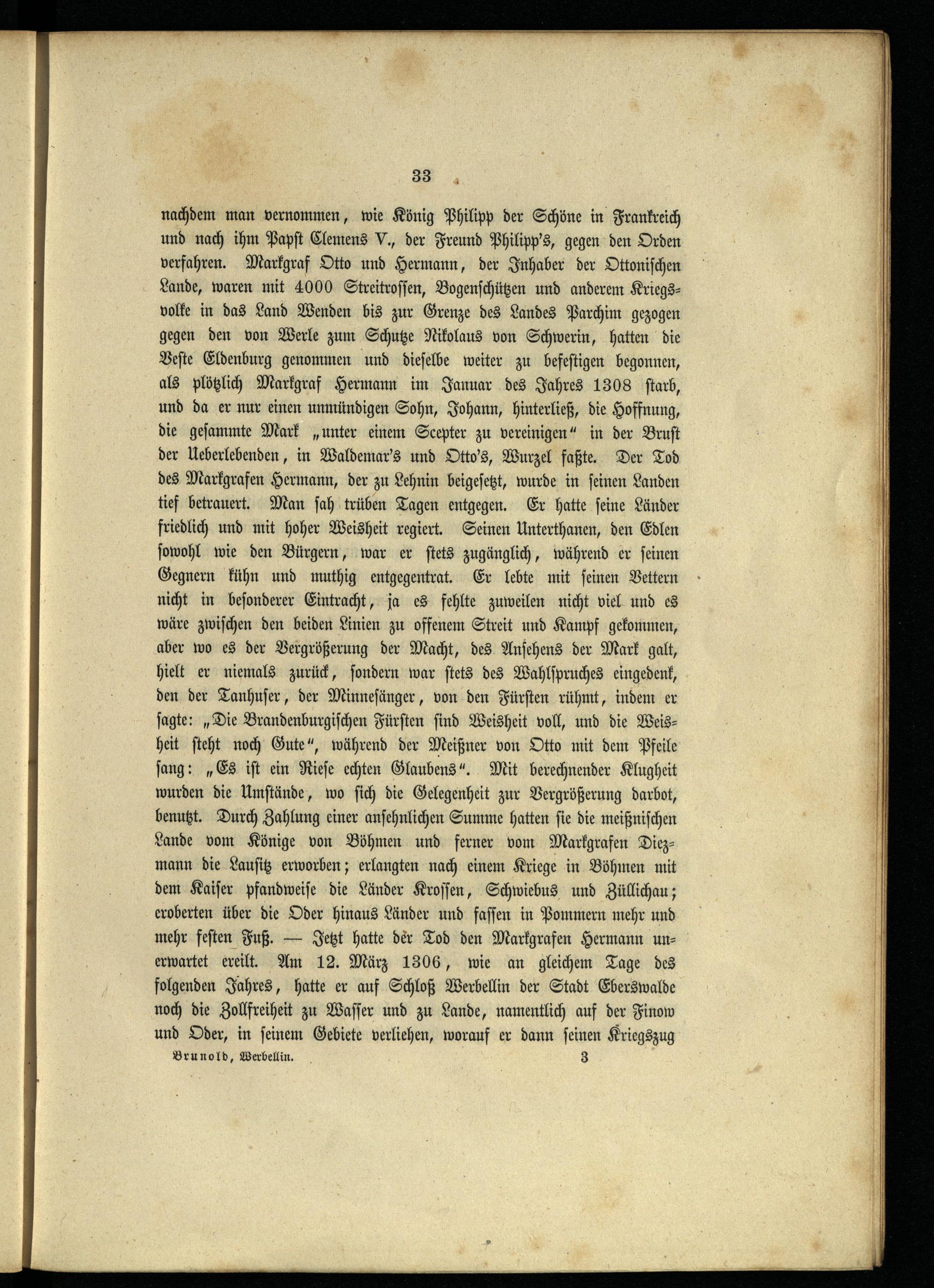 Die Askanier-Burg Werbellin : ein Beitrag zur Geschichte der Mark ; Auf der anlassung seiner Königlichen Hochzeit des Prinzen Karl von Preussen / von F. Brunold