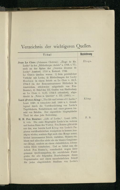 Verzeichnis der Schriften Locke's.