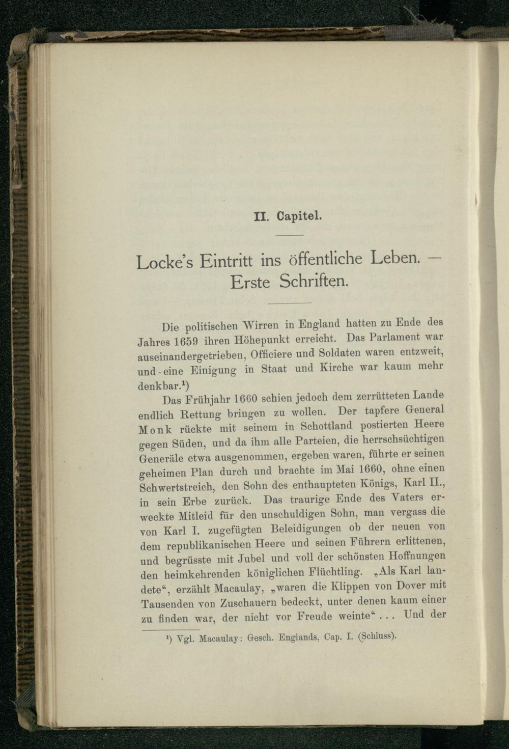 II. Capitel. Locke's Eintritt ins öffentliche Leben. - Erste Schriften.