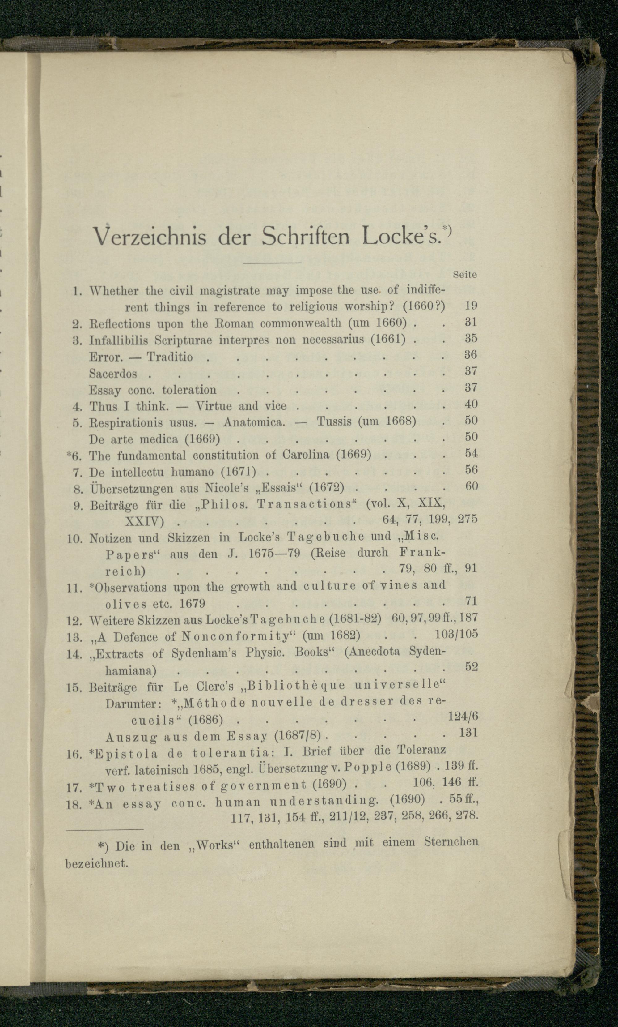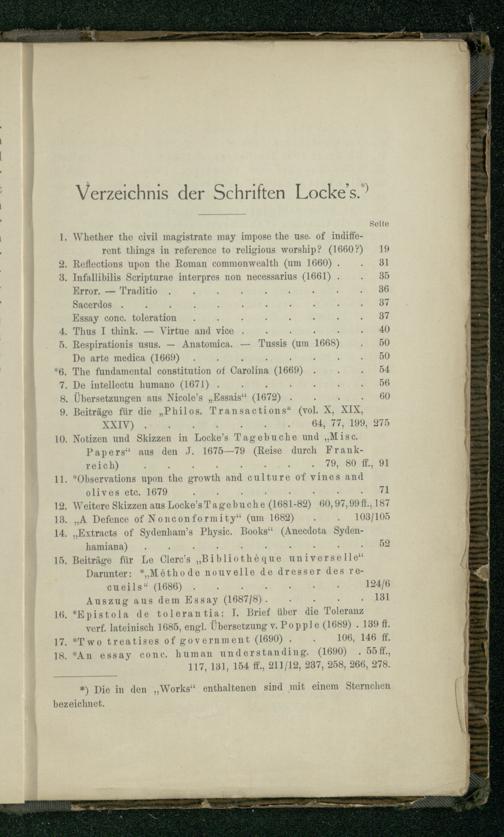 Verzeichnis der Schriften Locke's.