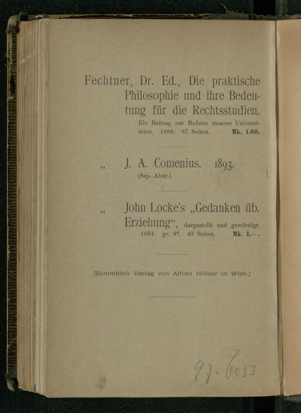 Verzeichnis der Schriften Locke's.
