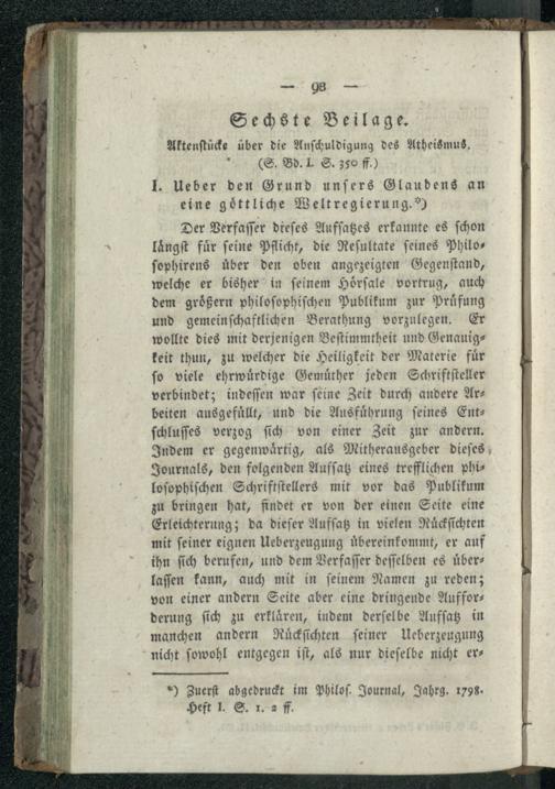 Sechste Beilage. Aktenstücke über die Anschuldigung des Atheismus.