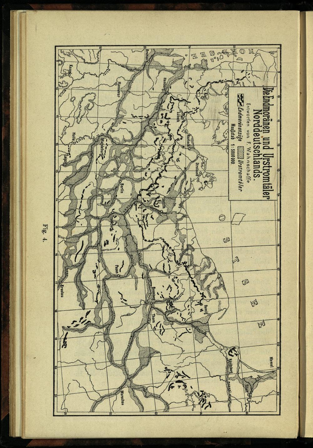 Karte: Die Endmoränen und Urstromtäler Norddeutschlands.