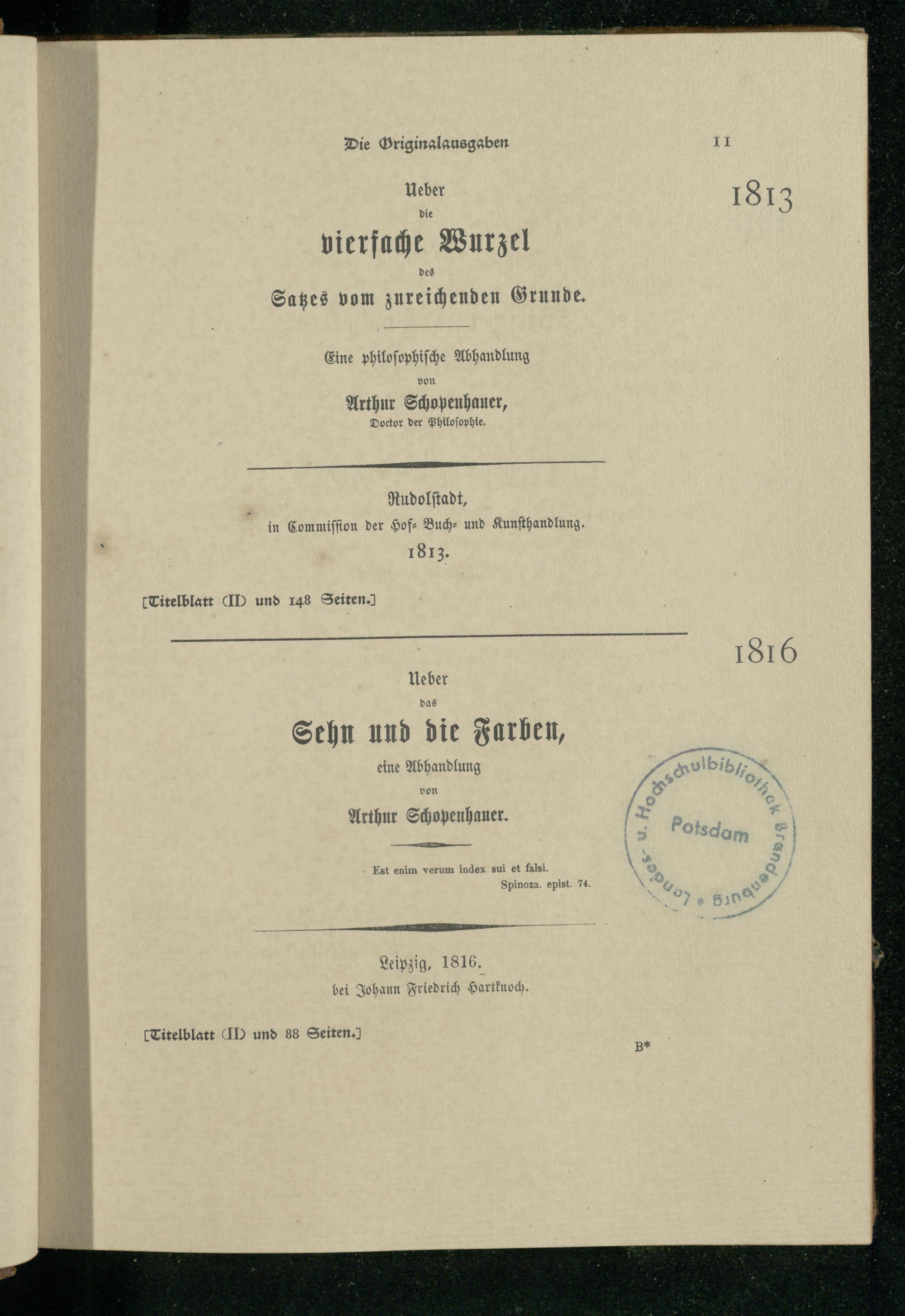 Edita und Inedita Schopenhaueriana : eine Schopenhauer-Bibliographie sowie Randschriften und Briefe Arthur Schopenhauer's mit Porträt, Wappen und Facsimile der Handschrift des Meisters / hrsg. zu seinem hundertjährigen Geburtstage von Eduard Grisebach
