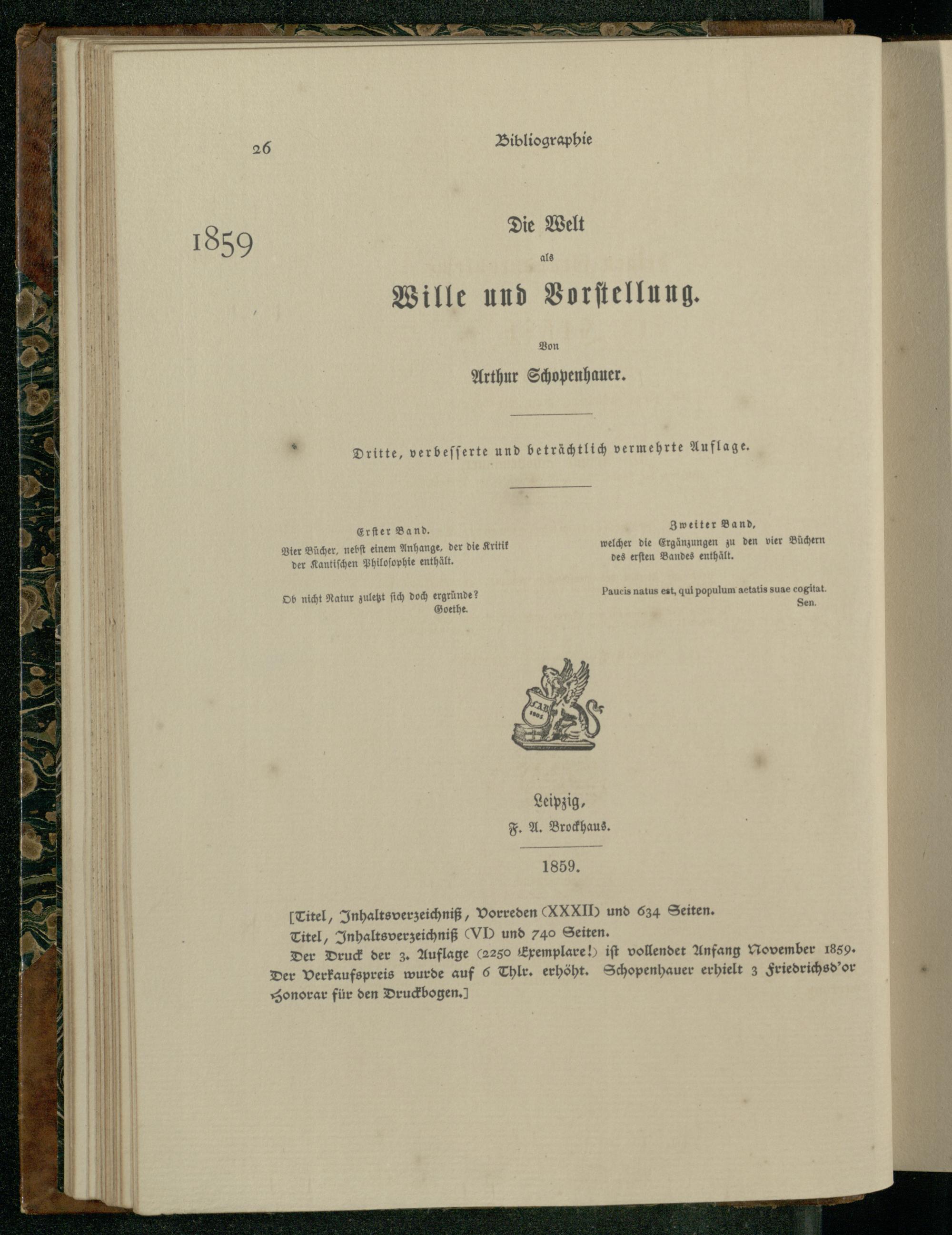 Edita und Inedita Schopenhaueriana : eine Schopenhauer-Bibliographie sowie Randschriften und Briefe Arthur Schopenhauer's mit Porträt, Wappen und Facsimile der Handschrift des Meisters / hrsg. zu seinem hundertjährigen Geburtstage von Eduard Grisebach
