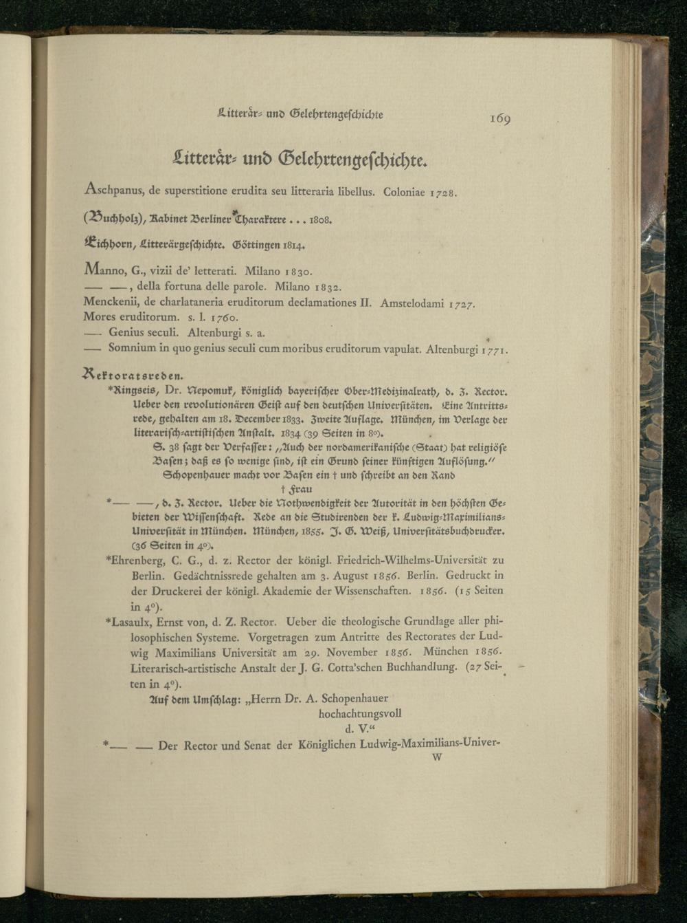 Edita und Inedita Schopenhaueriana : eine Schopenhauer-Bibliographie sowie Randschriften und Briefe Arthur Schopenhauer's mit Porträt, Wappen und Facsimile der Handschrift des Meisters / hrsg. zu seinem hundertjährigen Geburtstage von Eduard Grisebach